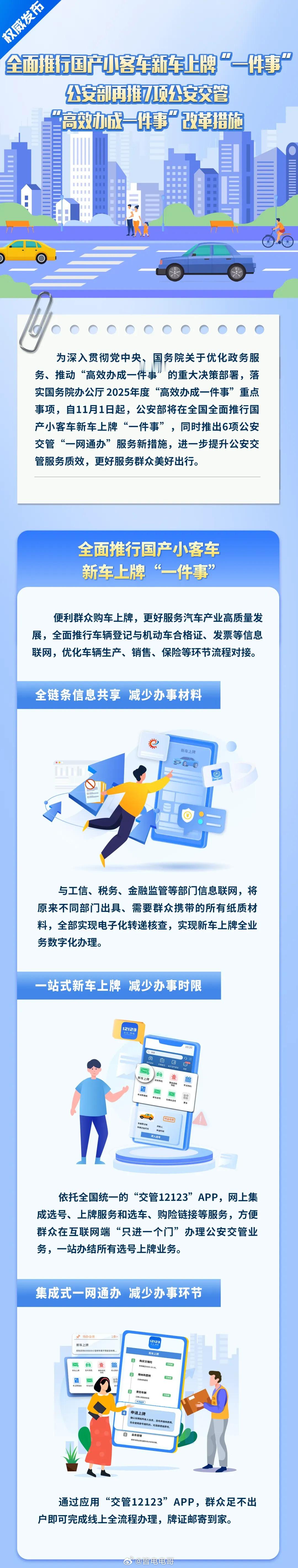 11月1日开始上牌不用再去车管所了,采用全业务数字化办理,群众免予提交纸质材料。
