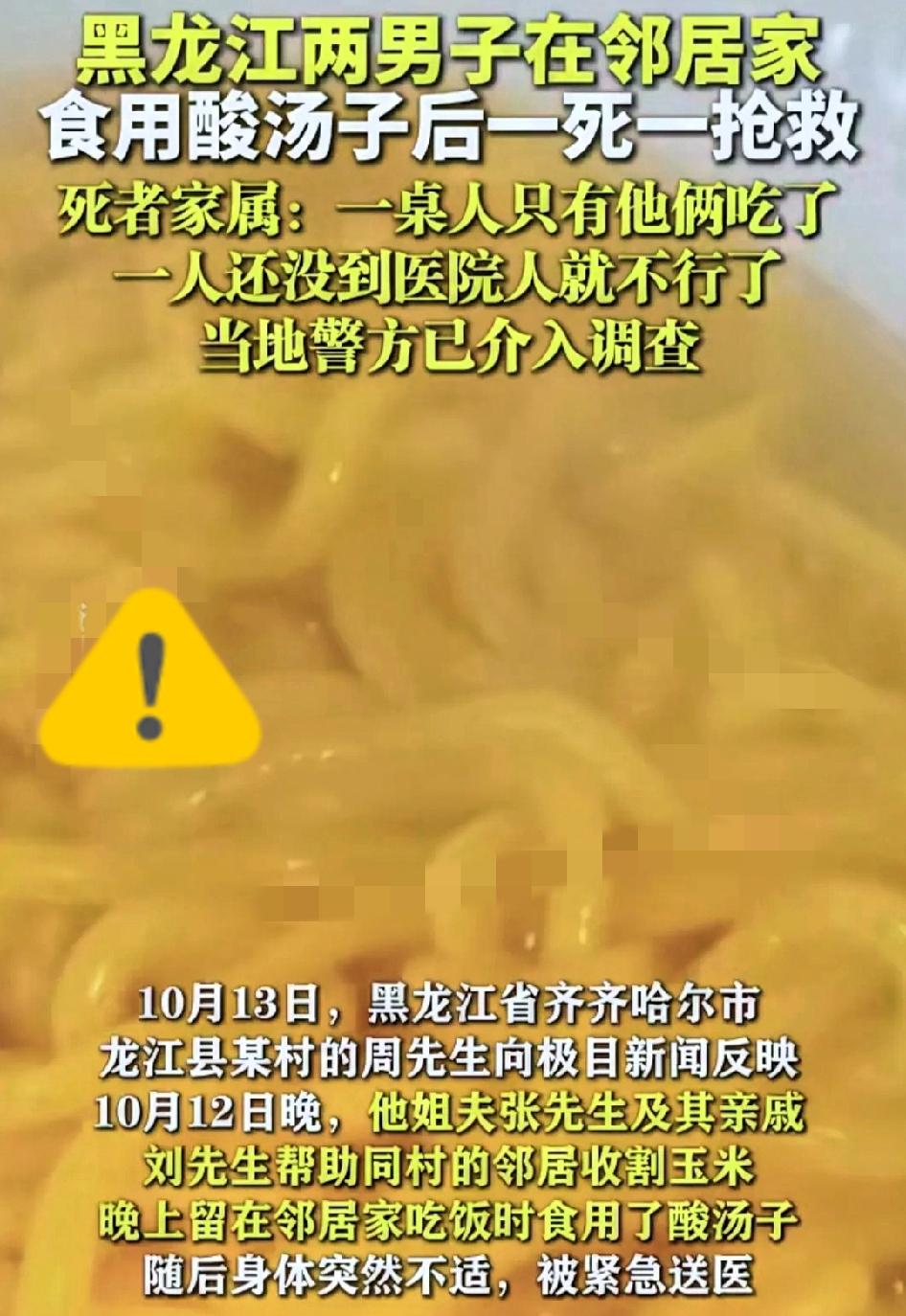 太吓人了! 黑龙江齐齐哈尔的张先生帮邻居收玉米,一顿答谢的酸汤子竟成催命符,一人