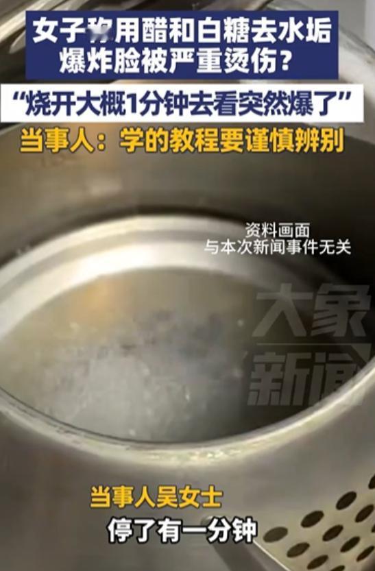 河北邯郸,女子为了去水垢,竟然直接将醋和白糖放进去烧,水开后1分钟,她揭盖想看看