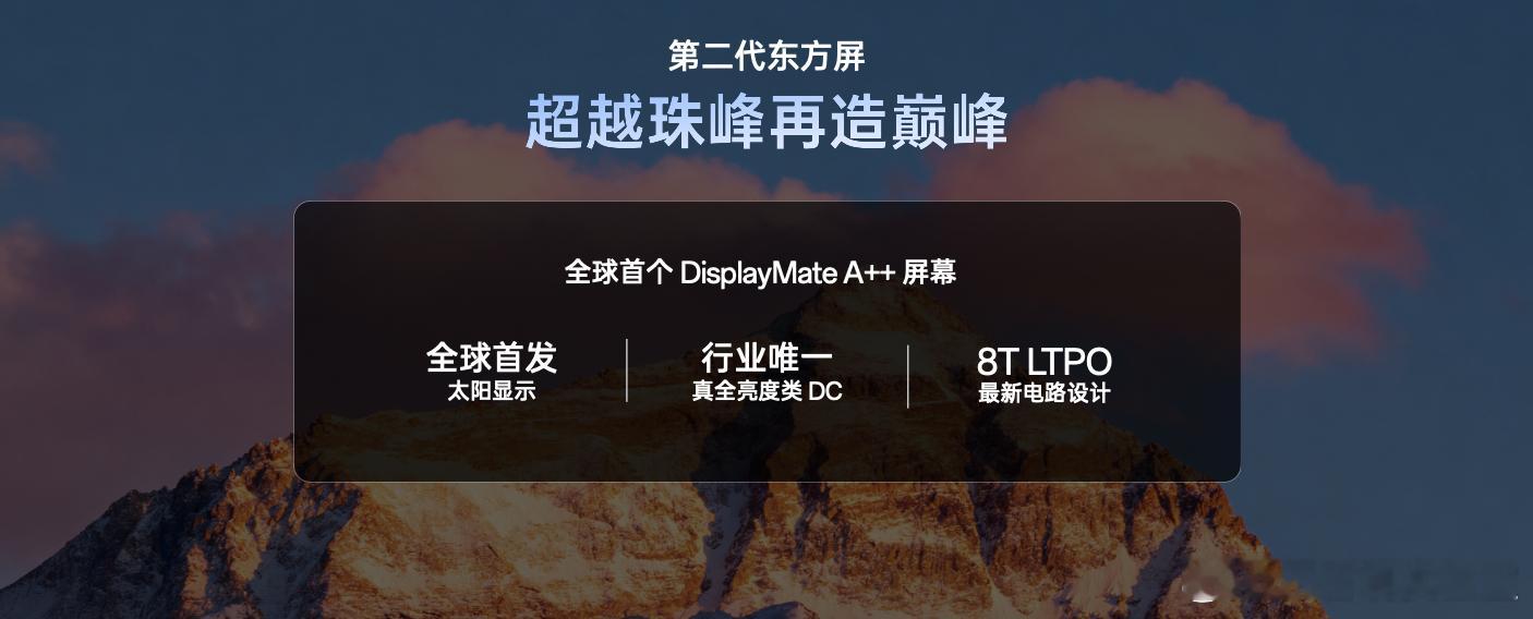 一加始终以 “打造世界上最好的屏幕” 为目标,引领中国高端屏幕发展。作为行业高刷鼻祖,2019 年,一加 7 Pro 首发 90Hz 高刷屏,引领行业「高刷革命」。「高刷」已经成为过去十年,手机最大的体验提升之一。从第一代东方屏追上世界上最好的屏幕,带来首块国产DisplayMate A+屏幕,到第二代东方屏超越珠峰再造巅峰,实现全球首个DisplayMate A++屏幕,东方屏的发展历程,代表了中国高端屏幕突破的缩影。中国屏幕刷新时刻