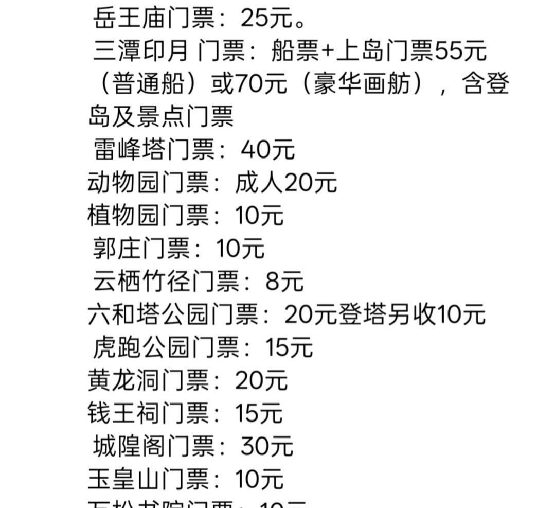 原来,我错怪扬州,错怪瘦西湖了。 今年国庆节,我去扬州瘦西湖游览,门票花了100元,我当时还写文章,进行了抱怨。 现在,我才知道,原来杭州西湖虽然不收门票,但是各个小景点都要收10元到40元不等的门票,合起来远远超过100元了。 看来是我错怪扬州,错怪瘦西湖了,惭愧啊,惭愧。 其实,杭州西湖我去过四、五次了,那些需要花钱的景点,我很少去,大部分游览的,是不花钱的景点。比如:断桥残雪,苏堤春晓,曲院风荷,平湖秋月等景点。所以,我都忘了小景点要收费这茬了。 看来,以后不论写文章,还是说话,都要三思而后行,不能随便发表自己的观点,免得被人抓住把柄。 (下图1:扬州瘦西湖的西门夜景。下图2:瘦西湖的二十四桥。下图3:杭州西湖各景点的收费情况。) #秋日生活打卡季#