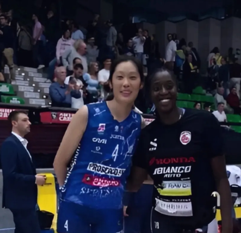 原谅我看到朱婷与原斯坎迪奇队友迪奥普的合照不厚道地笑了,没有别的意思,就是一种善