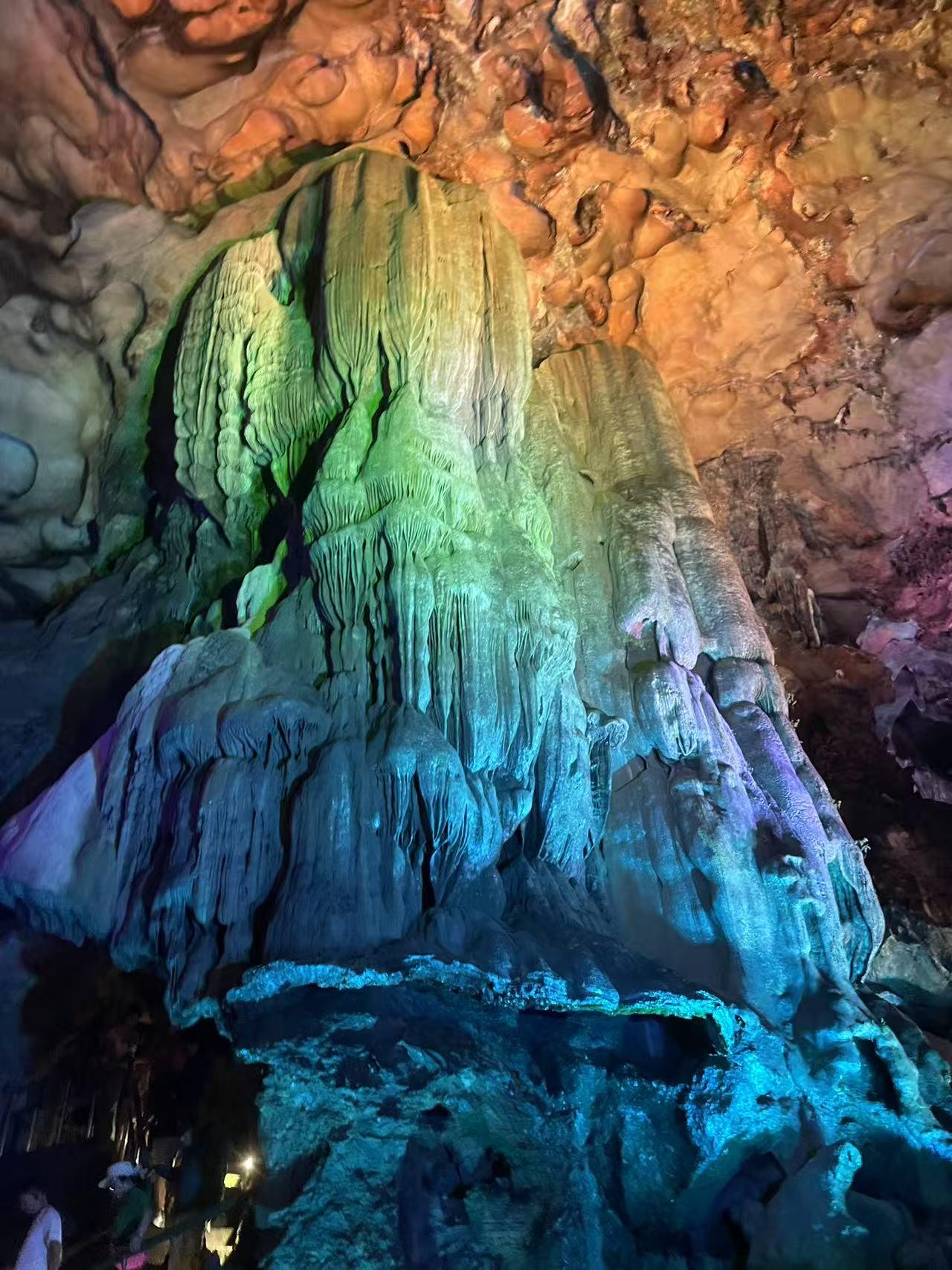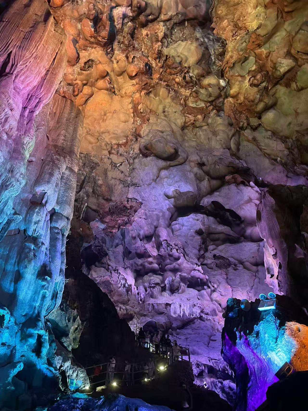 整个岩洞向下延伸达60米左右,洞内洞外俨然两个世界,尤其现在秋老虎肆虐的时候,洞内温度比洞外要低十几度,真是一个绝佳的避暑胜地。奈何拍摄技术欠佳,无法把它的壮观,神奇之处拍摄出来,如果有机会,我希望大家都能去一次,感受一下。观看完给我唯一的感受就是,在大自然面前,人真的是太渺小了。