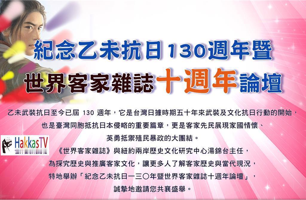 纪念乙未战争130周年。为了纪念乙未战争130周年,并庆祝《世界客家杂志》创刊1