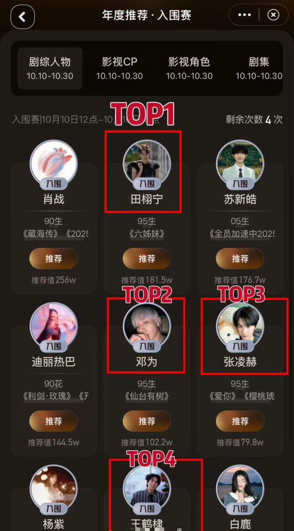 田栩宁邓为张凌赫王鹤棣95生前四剧综人物95生top4 微博视界大会,剧综人物95生前四,给谁抬咖了?[吃瓜]