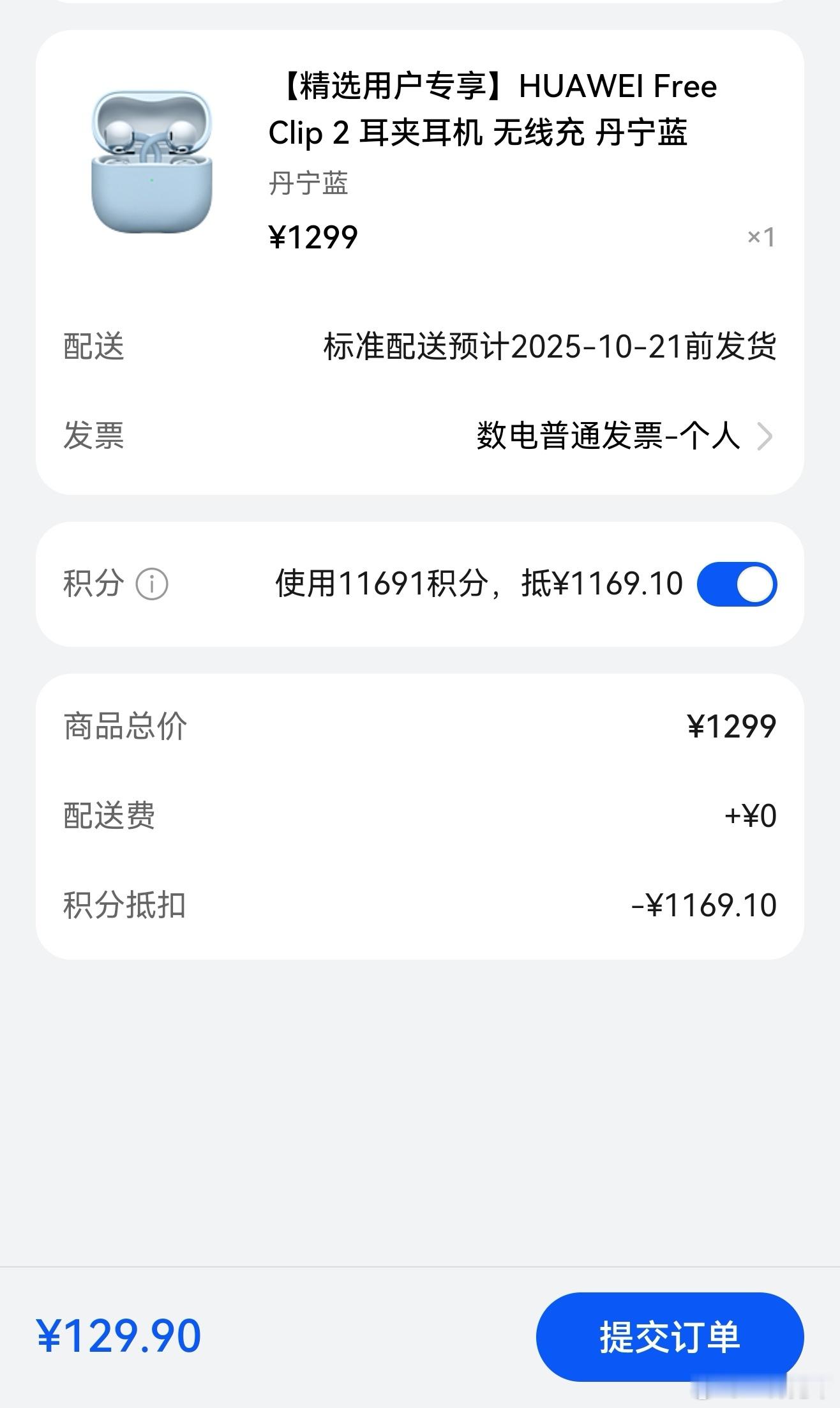 听说很多人没抢到蓝色的freeclip 2?我已经先下手为强了,用积分真爽[笑而不语]华为freeclip
