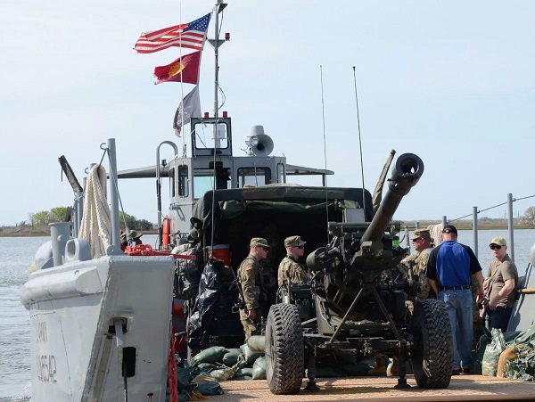 2019年4月24日至25日,美国弗吉尼亚州国民警卫队在北卡罗来纳州的美国海军陆战队勒琼营进行了代号为“鳄鱼行动”的水上炮兵演习。参演装备为弗吉尼亚州国民警卫队第111野战炮兵团第1营的1门105毫米M119榴弹炮和现役第7运输旅第11运输营的4艘Mk 8机械化登陆艇(LCM-8)。 据弗吉尼亚州国民警卫队公共事务办公室声称,这是第111炮兵团自诺曼底登陆后,75年来第一次执行水上炮兵任务。而以整个美军而论,上次以登陆艇搭载榴弹炮组成机动炮兵还是越战时期第9步兵师在湄公河流域的战斗行动,也是50年前的事了。