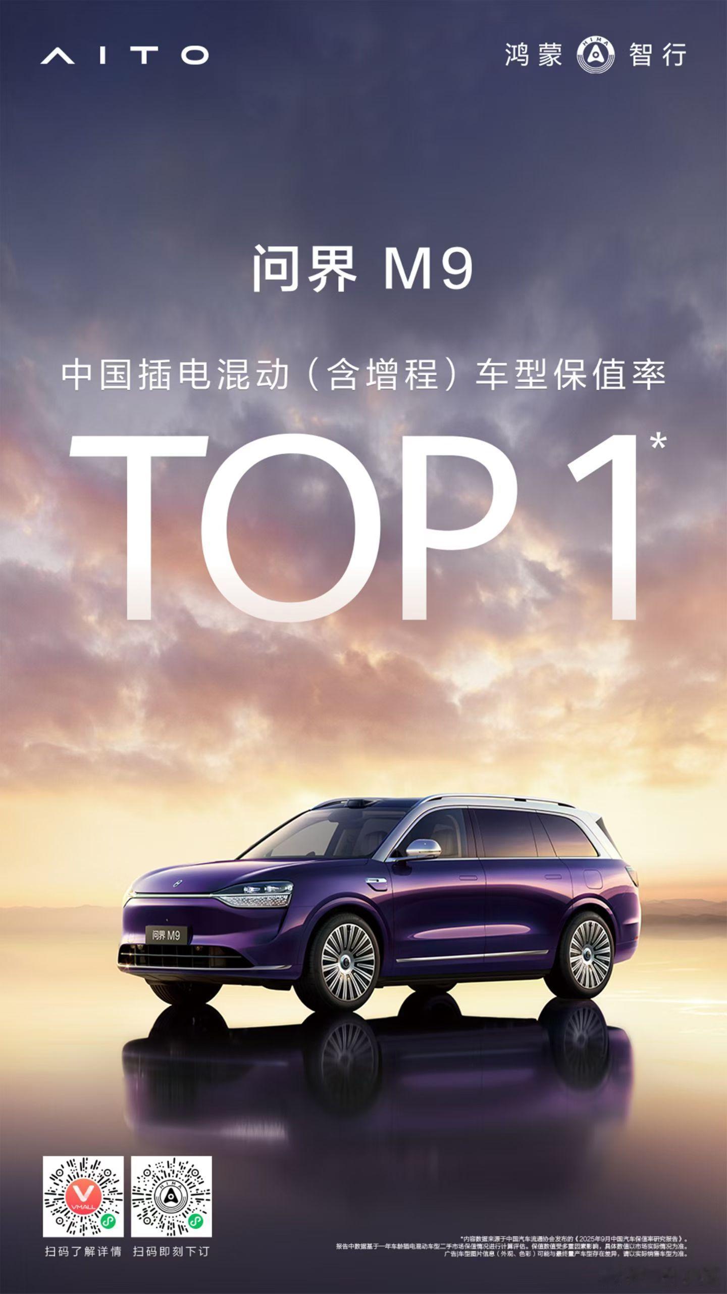 问界M9蝉联插混车型保值率第一名,继续领先~
