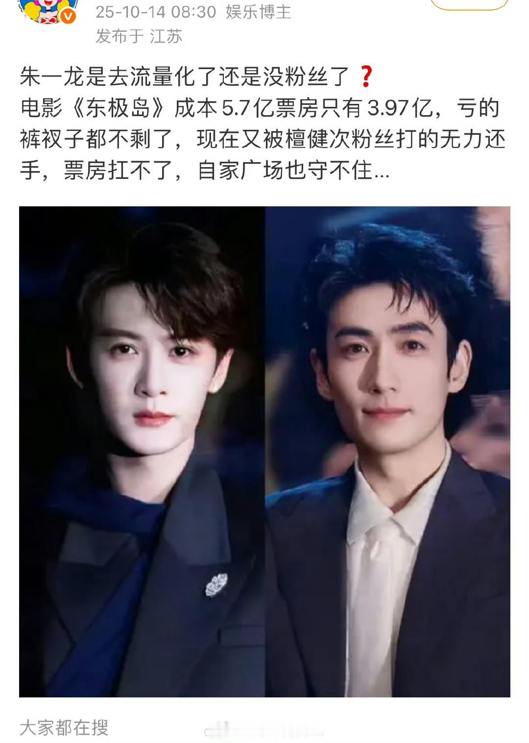朱一龙广场被檀健次粉丝图了,因为一个电影瓜吗?没想到朱一龙现在流量差到守不住广场……
