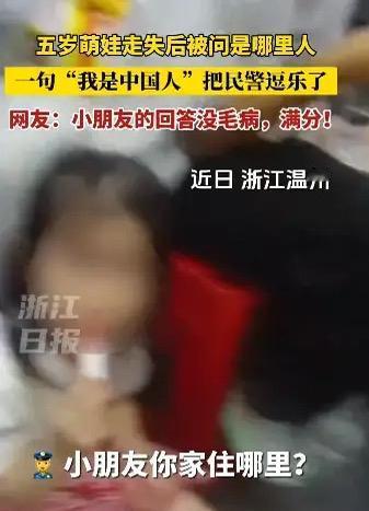 我有个感觉, 这小女孩的一句话,比多少安全教育都管用。 不是因为孩子走失让人揪心,也不是民警的耐心照顾,而是她脱口而出的那句“我是中国人”,让周围的大人一下子安静了。 事情发生在傍晚,天有点凉。五岁的小女孩站在小区路边,许奶奶拉着她的手。民警蹲下来问她,小朋友,你是哪里人呀?女孩眼泪还没干,声音却清楚:我是中国人。旁边有人笑了。可女孩接着又说,我全家都是中国人。笑声停了。 民警后来带着孩子找妈妈,一家家宾馆问过去。女孩认出玻璃门,妈妈开门时腿都软了。她是从江西来看丈夫的,睡过了头,孩子自己跑了出去。 民警也是江西人,他对孩子妈妈说,记得自己是中国人,这很好,但也要记住妈妈的电话。 很多孩子会背儿歌,背古诗,但很少被教,走丢了该找谁。一句“我是中国人”背后,是小小的归属感;可归属感之外,还要有保护自己的意识。