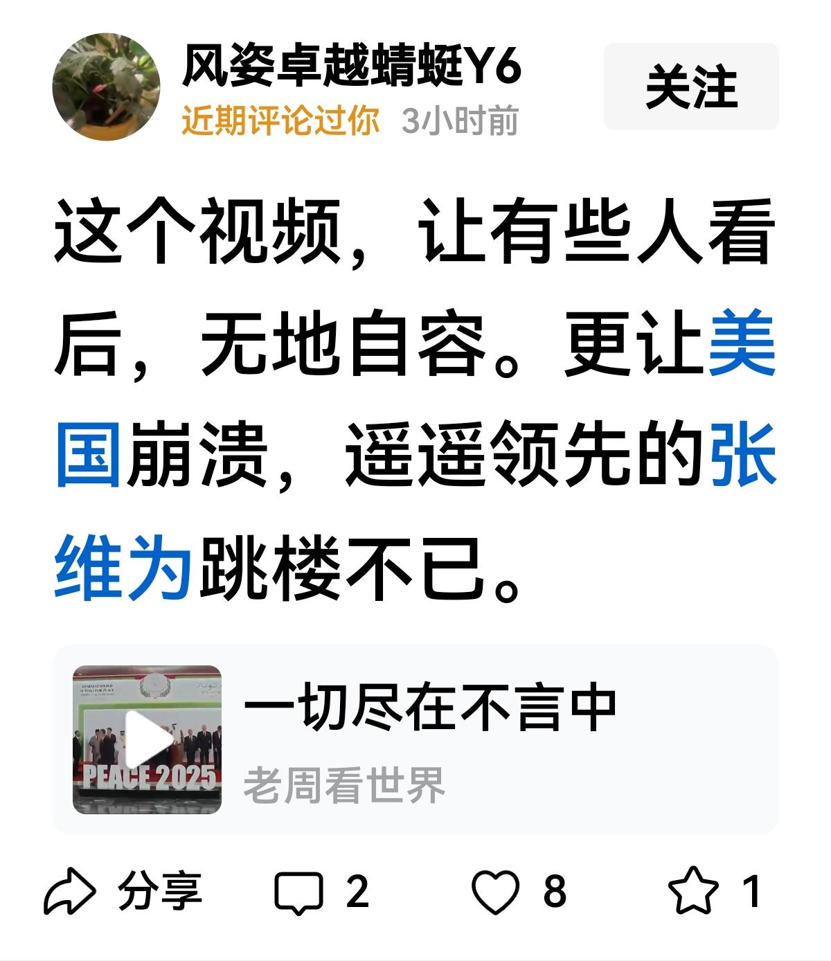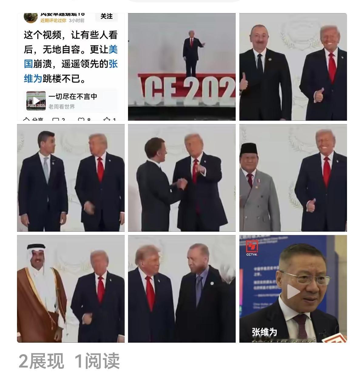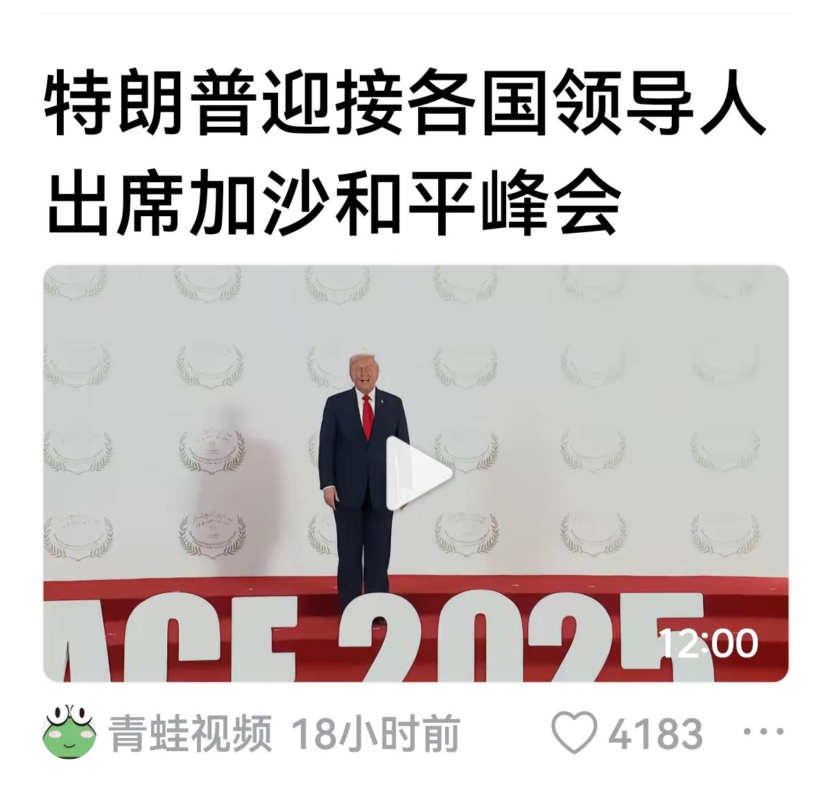 【特朗普就是爱出风头】 特朗普搞了一场加沙和平峰会,说白了就是得瑟,炫耀,万国来朝的满足感。 让以色列总统特赦内塔尼亚胡等等。 不知国内大咖如何解读这场和平峰会?好像集体闭嘴了,要是不成,估计都活跃起来了。 尤其沈大师,阎大师,高大师,以及张大师,好像都统一沉默了?