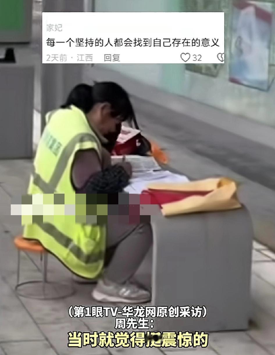 10月14日,河南一位网友分享下班时经过公交车站看到一位环卫大妈正在埋头认真学习的视频,当时觉得很震惊,毕竟这个岗位的人能静下心来学习真的很难得。也有网友推测难道这个岗位也要进行一些理论知识的考核,那真的太卷了。