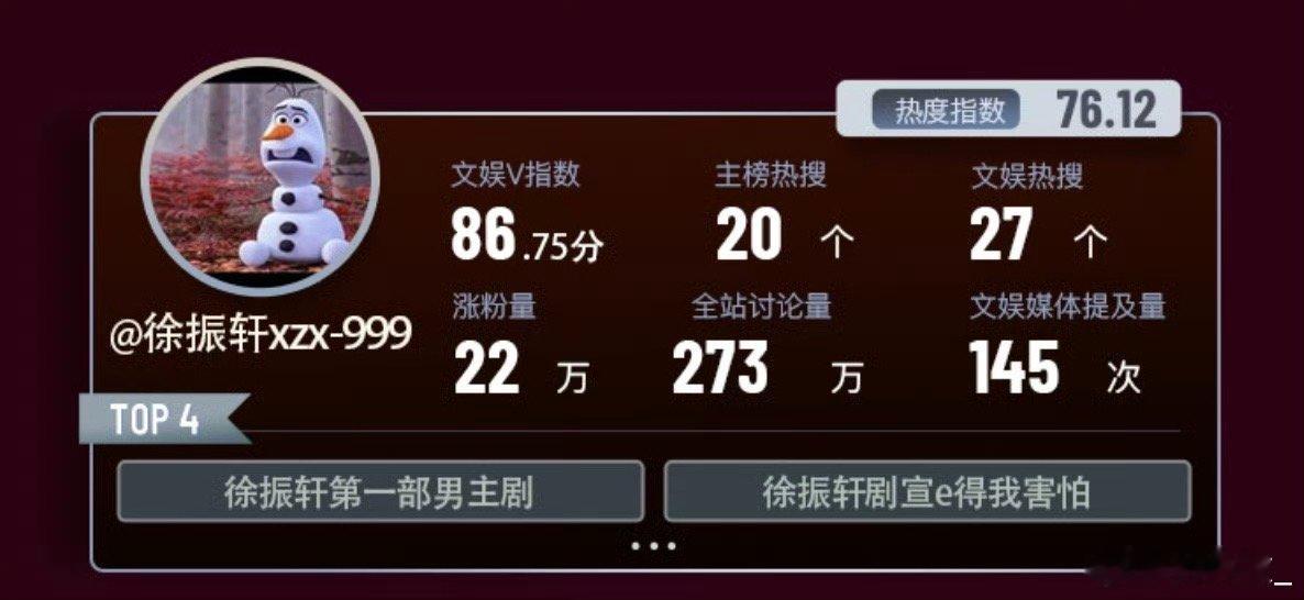 徐振轩9月微博演员涨粉TOP1徐振轩首次入围微博演员热度报告恭喜发现宝藏[打c