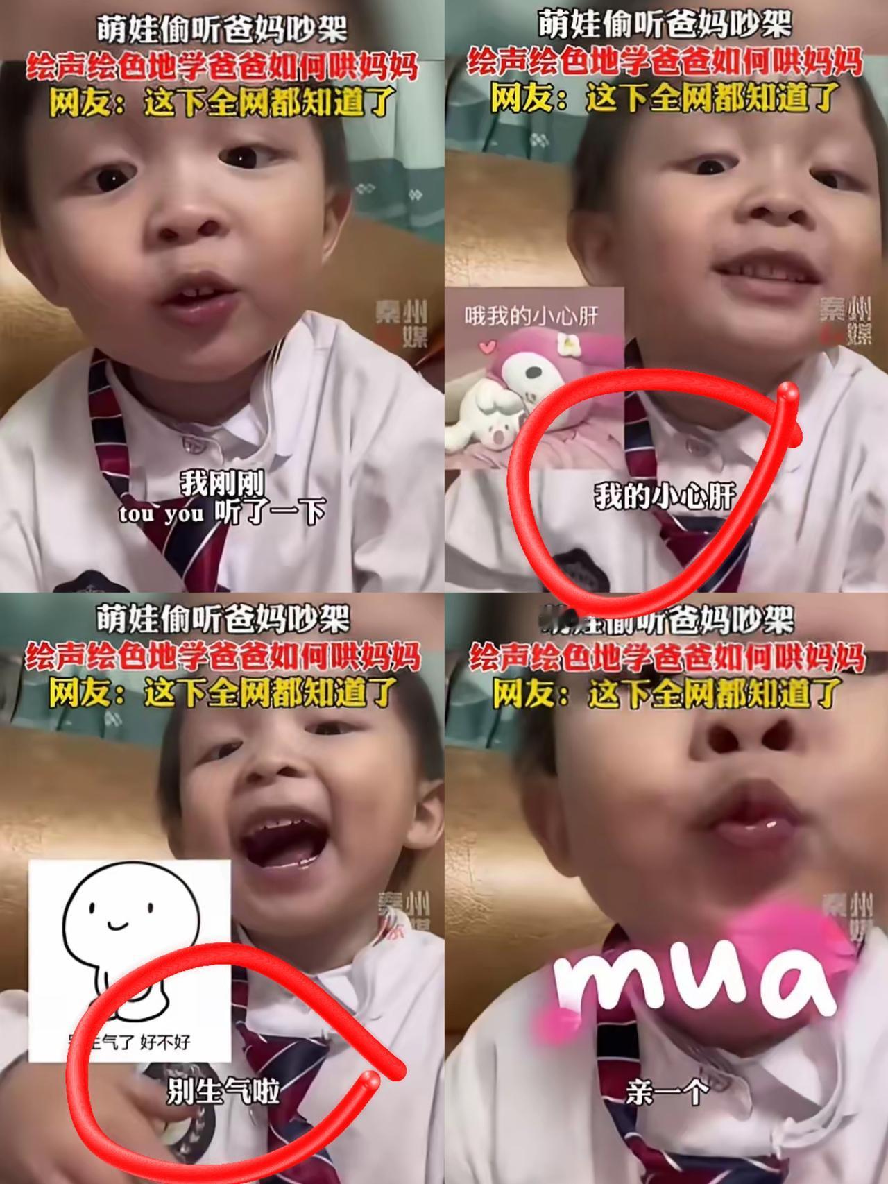 刷到萌娃学爸爸哄妈妈的视频,真的被戳中了!你看那小不点皱着眉模仿爸爸喊“小心肝”