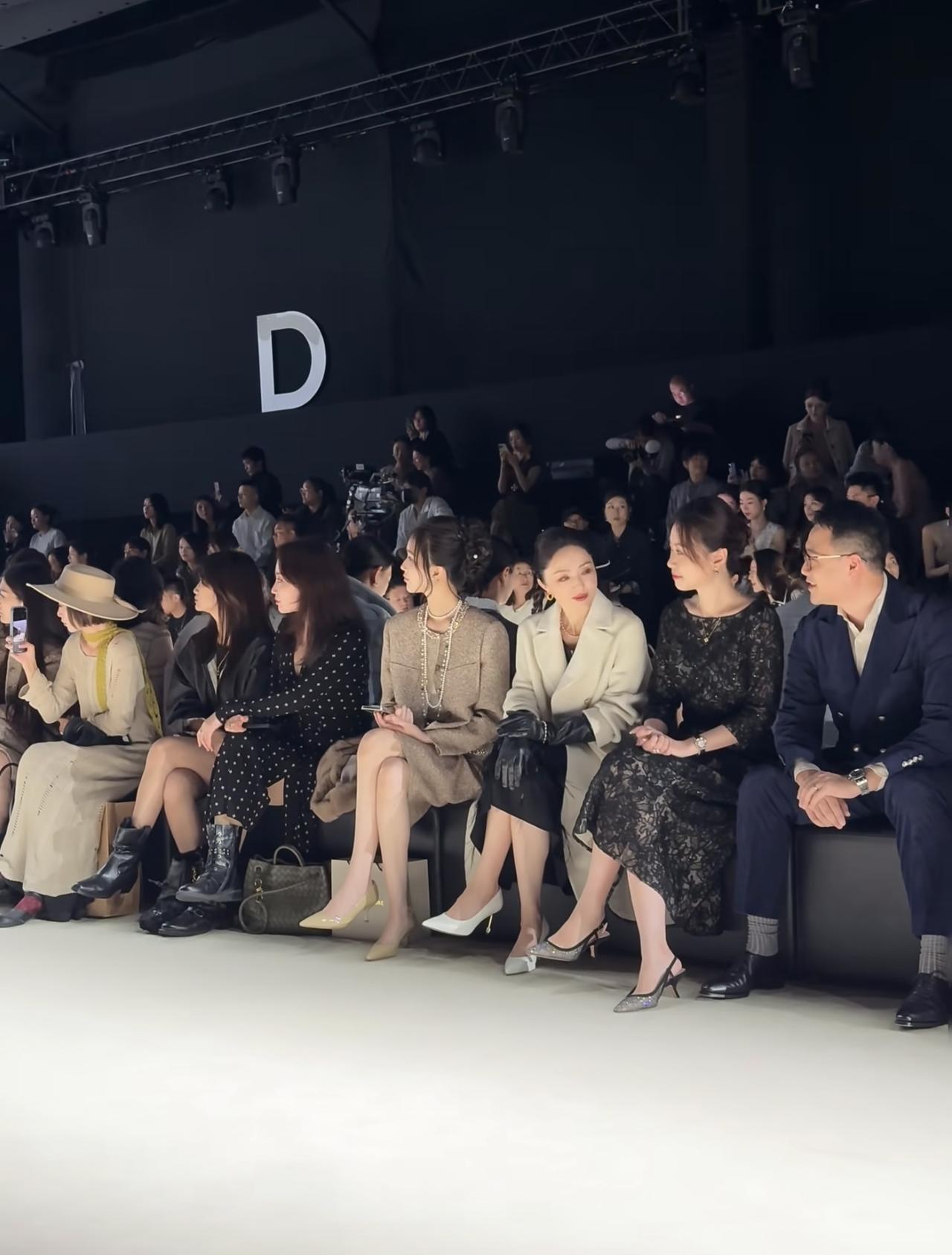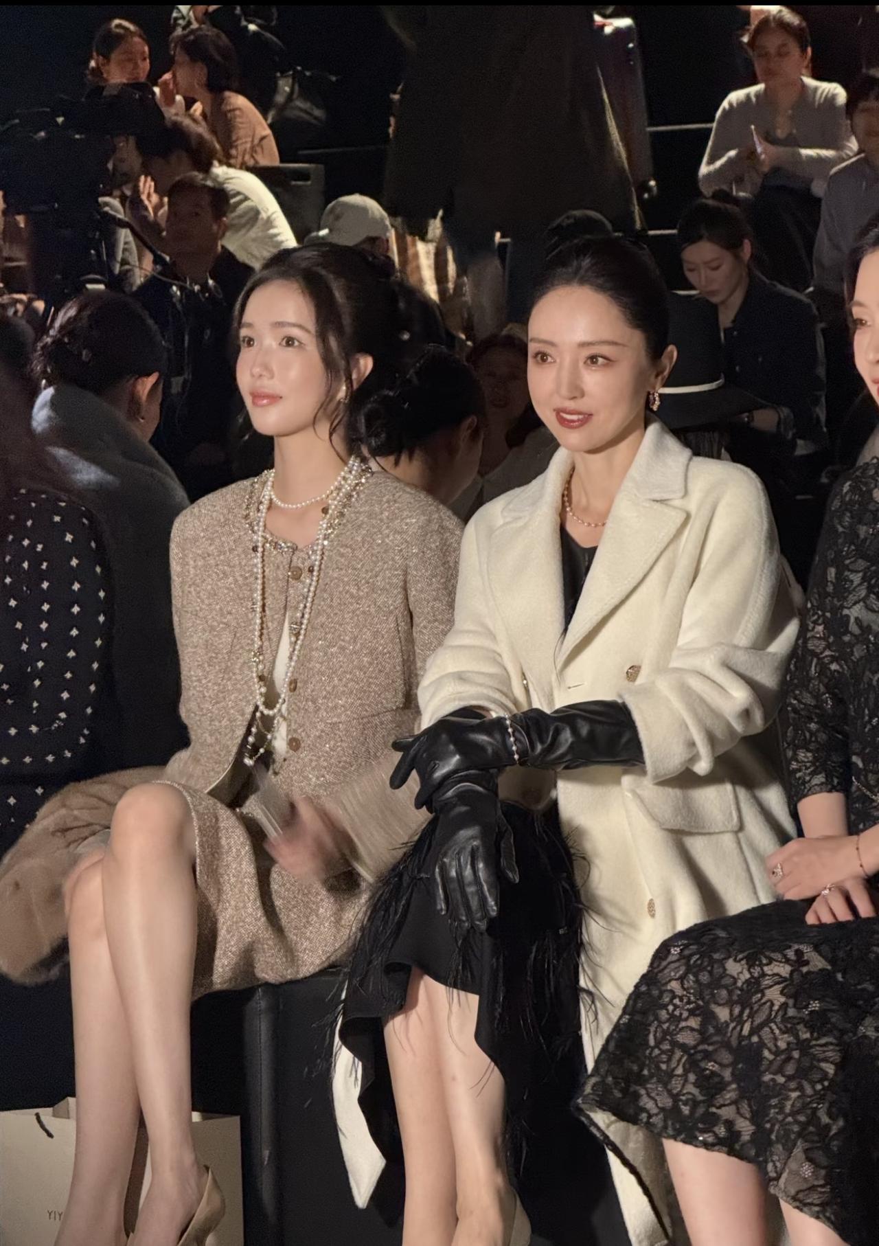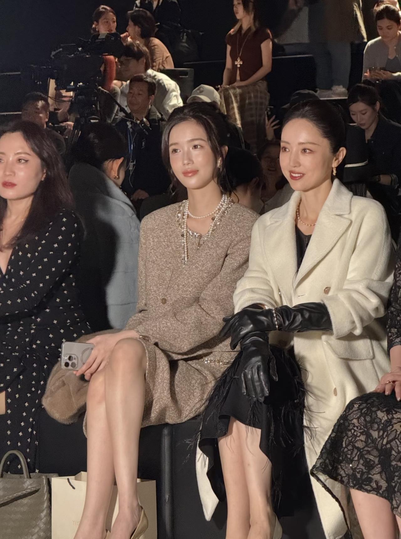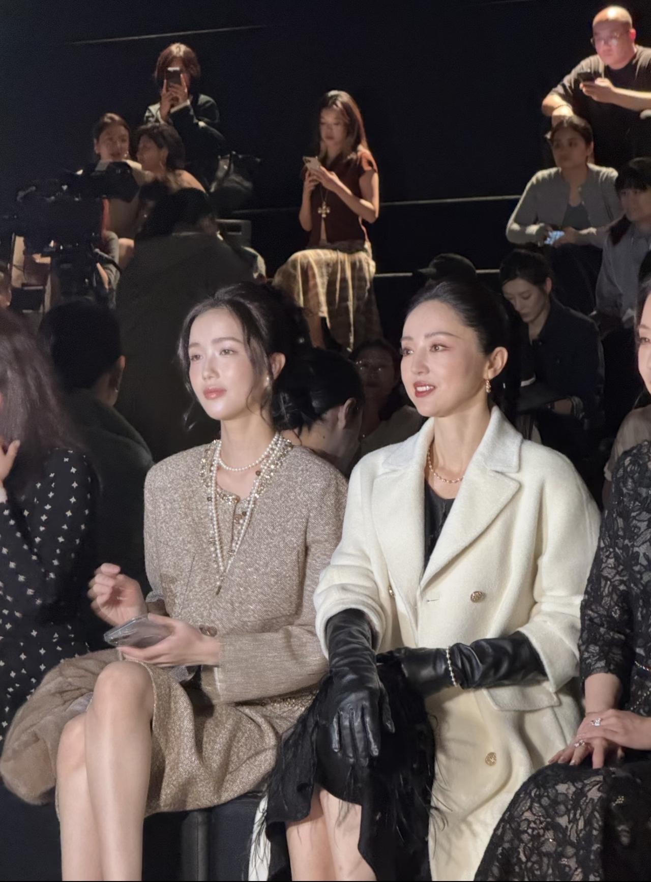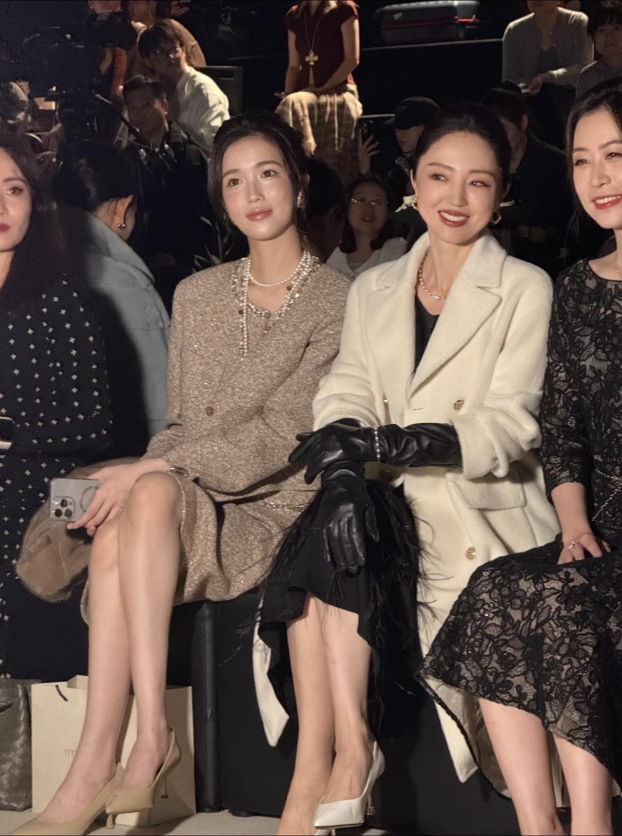 10月14日,有位网友在上海看秀时偶遇董璇,她的穿搭Look,好显贵气啊。 董璇坐在台下边看秀,边和旁边的美女聊天,一举一动都很优雅大方。董璇 上海 时装周
