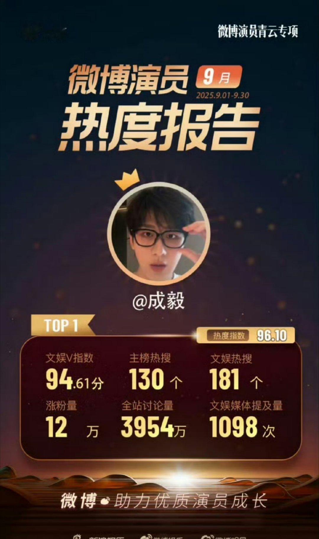 微博演员九月热度报告,第一是成毅,那这能不能说明赴山海有效播剧了