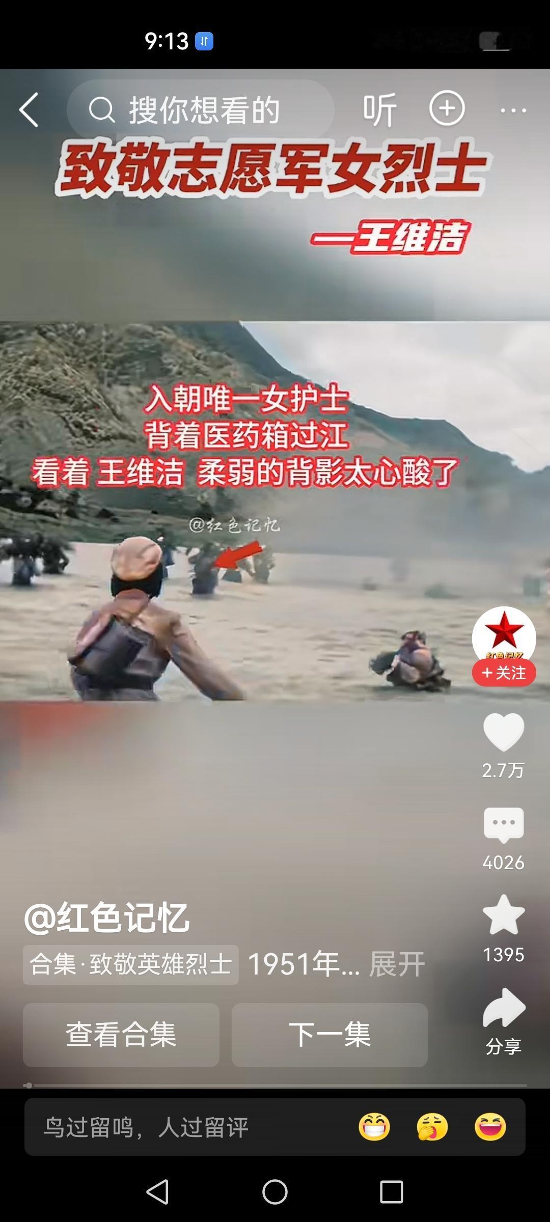 刚我看到一个视频是真实的视频,女兵魏薇和他的弟弟,在战场上见面,弟弟当天就牺牲了,后来姐姐也过了一段时间,也牺牲了,我没有别的意思,以后我们国家在对外战斗中希望绝不允许女性在战场第1线出现,这种视频真的受不了。最近一段时间我还看到一个医疗女兵越过鸭绿江的背影,据说也牺牲了,我只是恳求任何对外战斗中,真的不能把女兵再放上去,只要这样男兵看到,怎么能受得了?实在有需要的,把我们这些老汉派上去吧,我们还跑得动。