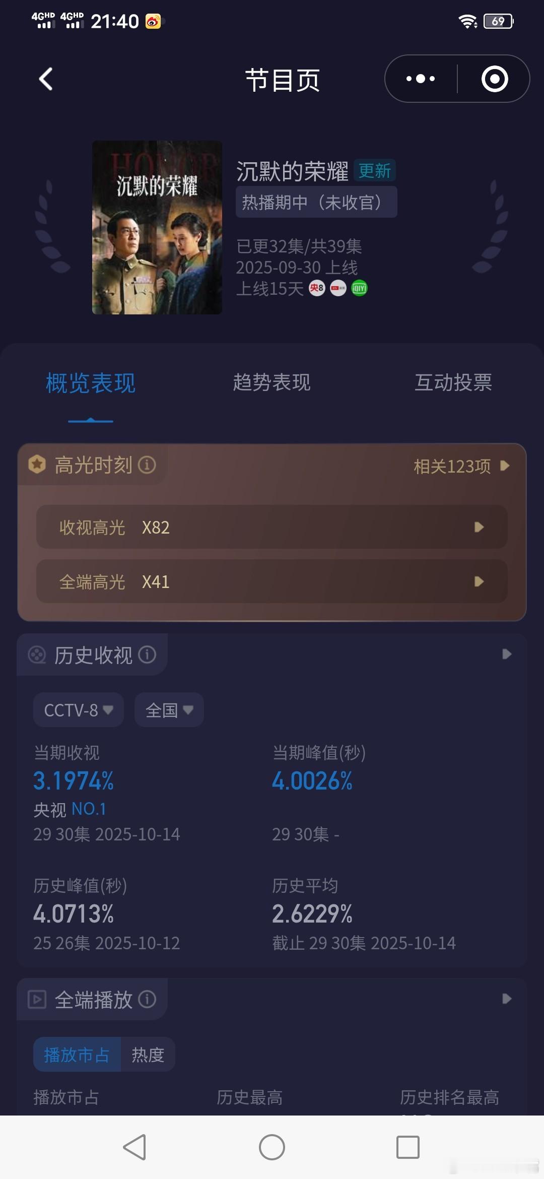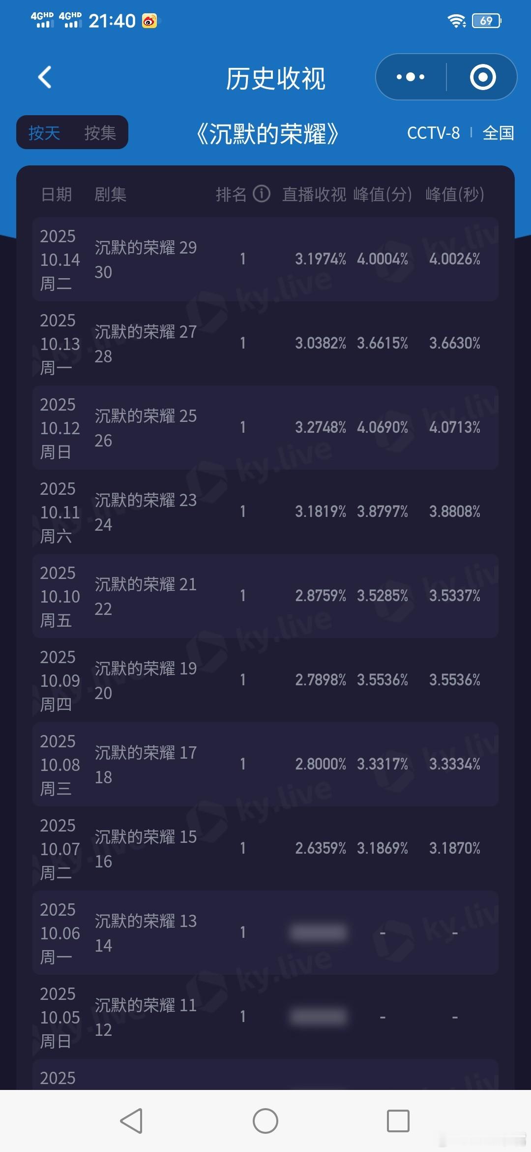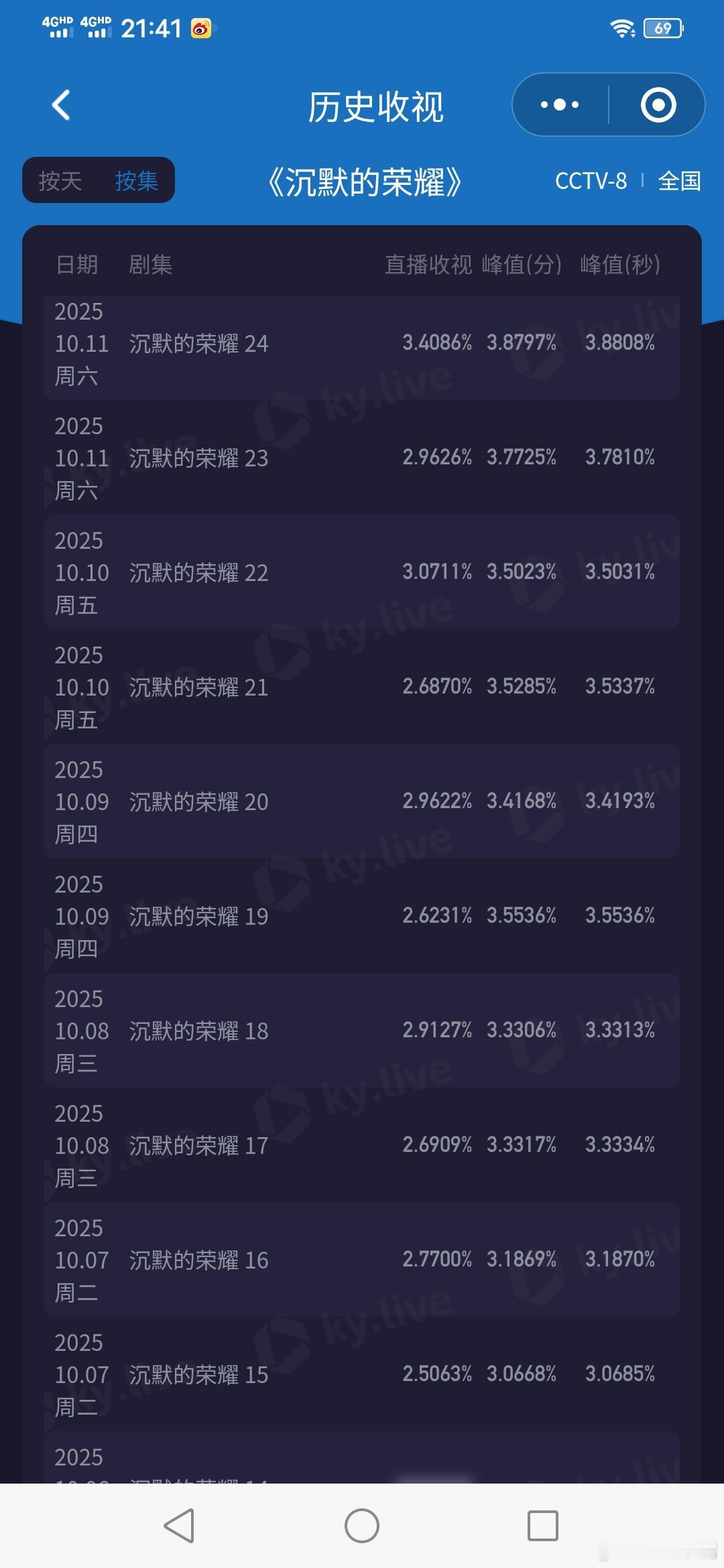 沉默的荣耀《沉默的荣耀》周二大涨了!峰值再度破4,双集平均3.1974,仅次于周日![给力][给力][good]