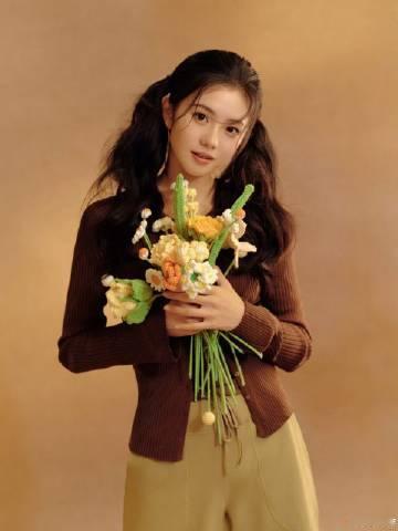 刘浩存手捧钩针花束刘浩存双马尾居家照刘浩存双马尾居家找萌萌嘟
