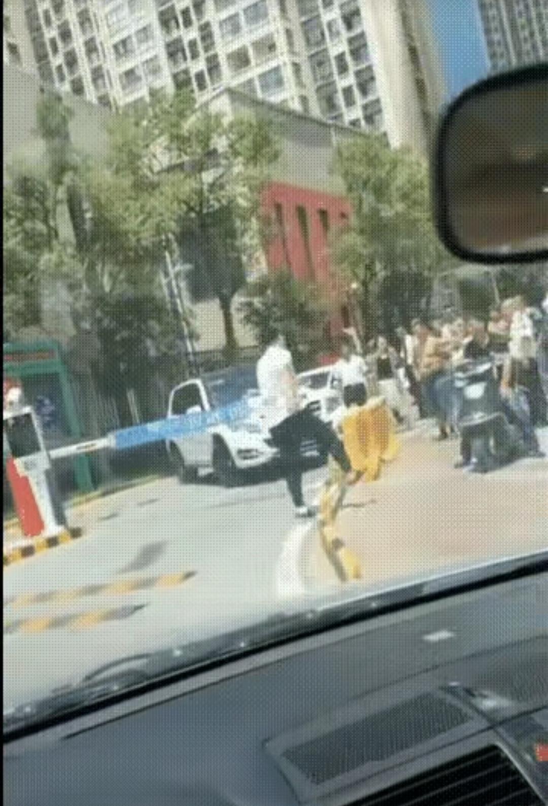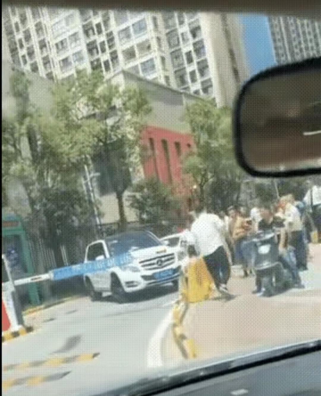 奔驰女士因斗气把车横在小区大门口,一位男业主挥拳相向? 先不说堵门多缺德——