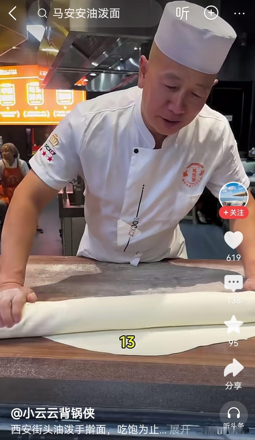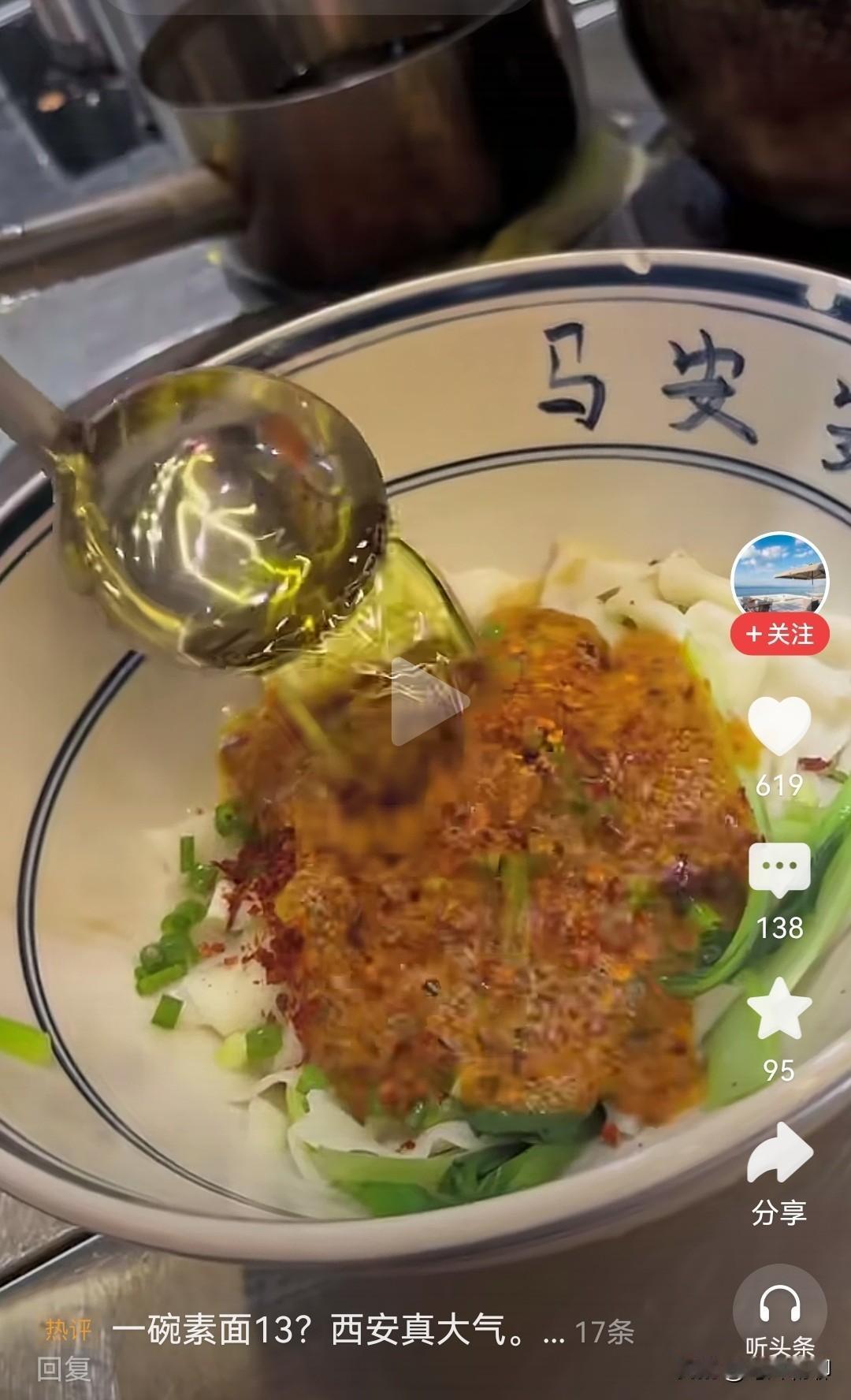 看咱西安这油泼扯面美不美,一根面有一米长,不需要各种臊子,只需放上辣子和小葱,再