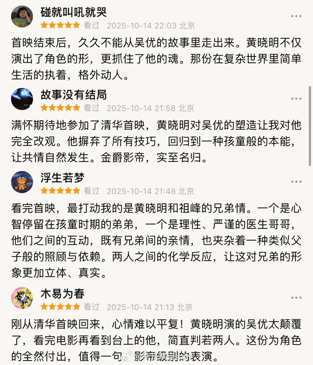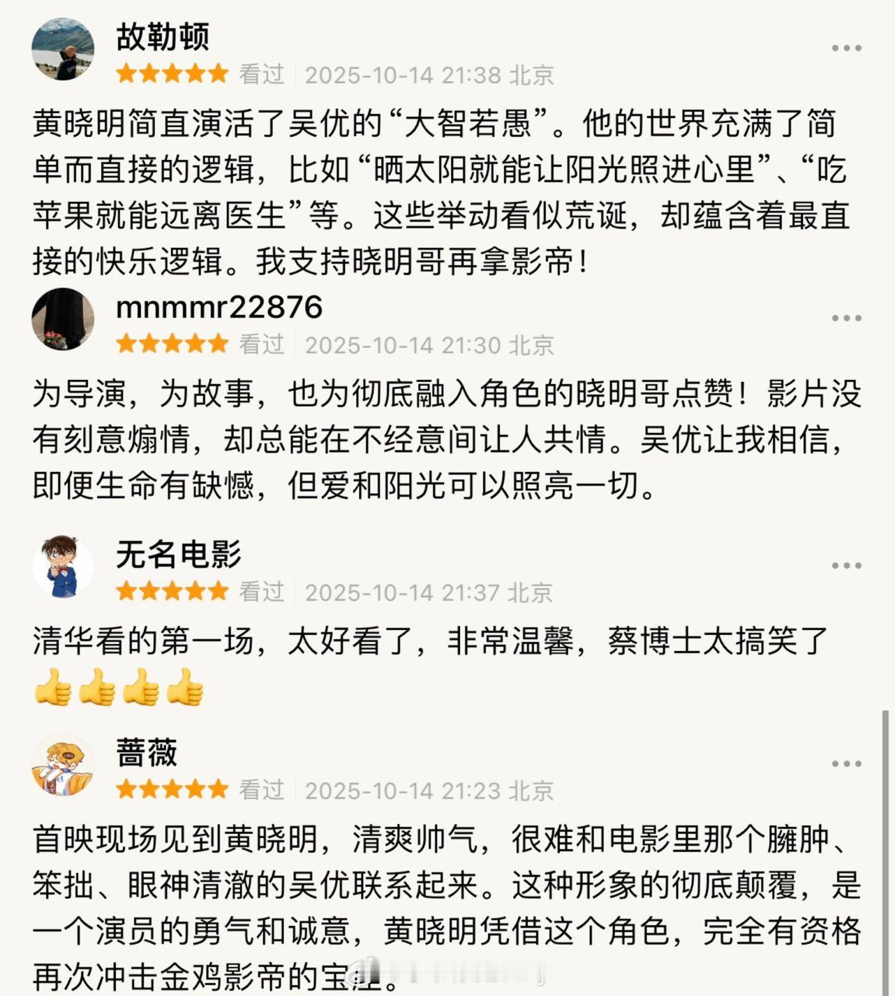 我被这个晓明哥完全惊呆了!新电影阳光俱乐部的表现好突破好不同!!预告片就看得我对黄晓明这次的角色大觉🐮!8岁智力的成人,很有挑战的角色,我其实基本没认出来晓明哥,预告片我就是惊讶状看完的🤣!看第一波首映反馈,晓明哥的正片表现的的确很强很好,基本都是说他这次演出了一个完全不一样的自己,毫无表演痕迹,强的可怕[流鼻血] 黄晓明新片清华首映口碑