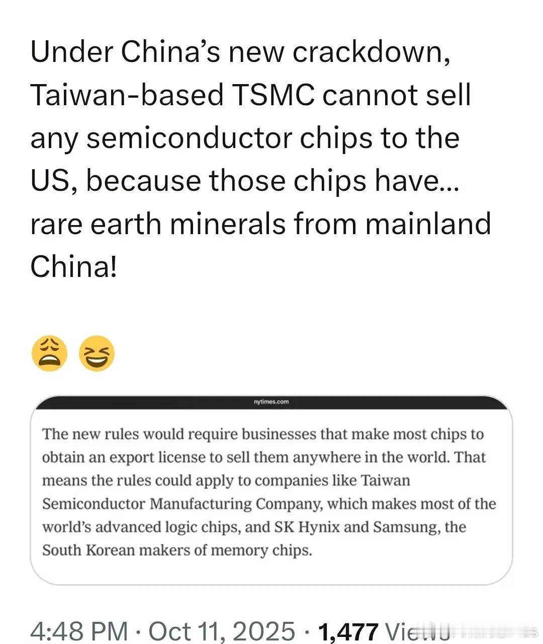 在新规的冲击下,台积电无法为美国生产任何半导体芯片。替代品也不是一天二天能解决。