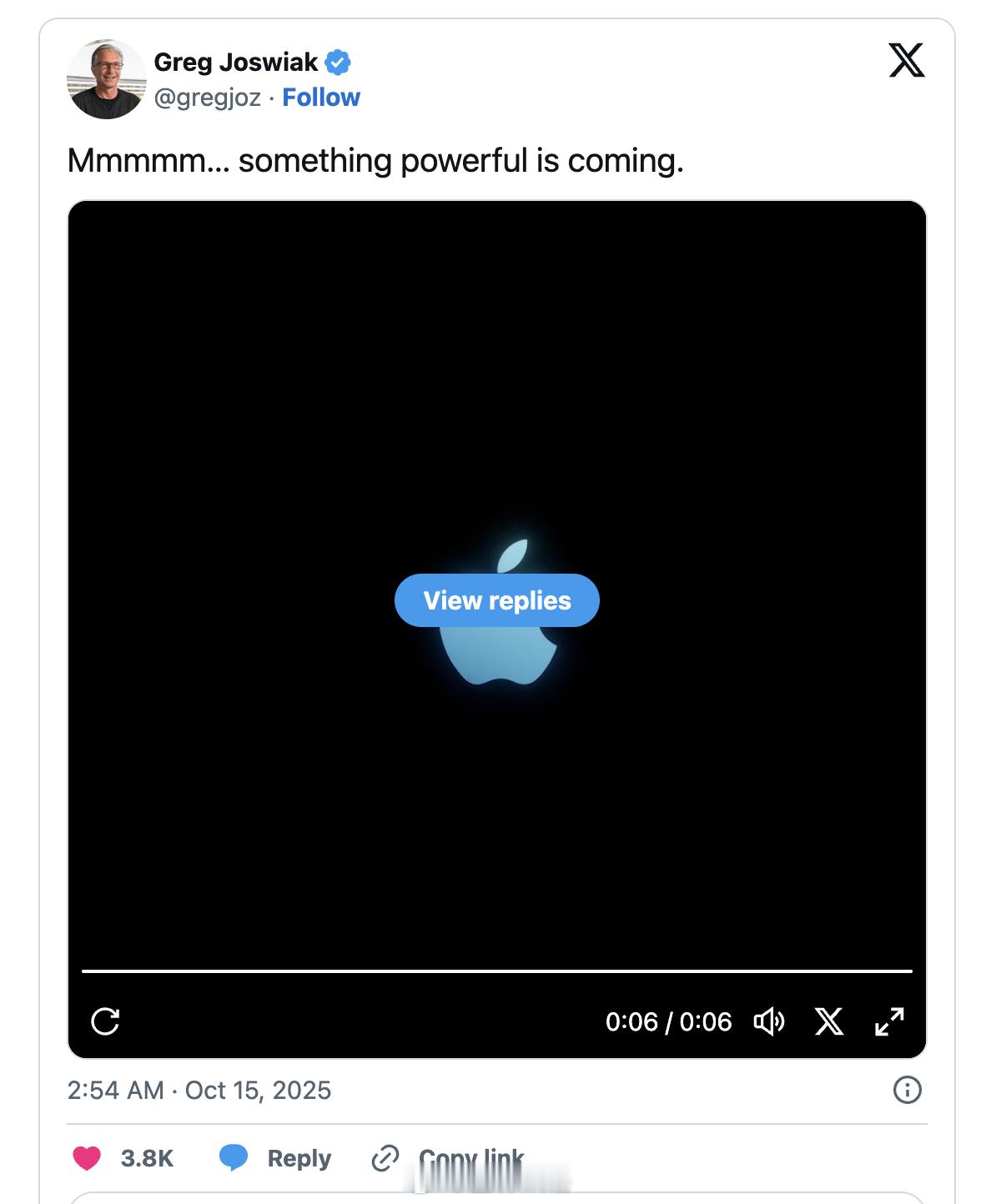 苹果营销主管在 X 上官宣了即将推出的一款产品,并表示“强大的产品即将推出”。大概率是本周发布的 M5 芯片的 MacBook Pro,不过仅限 M5 芯片版本,M5 Pro 跟 Max 版本的要到明年了。