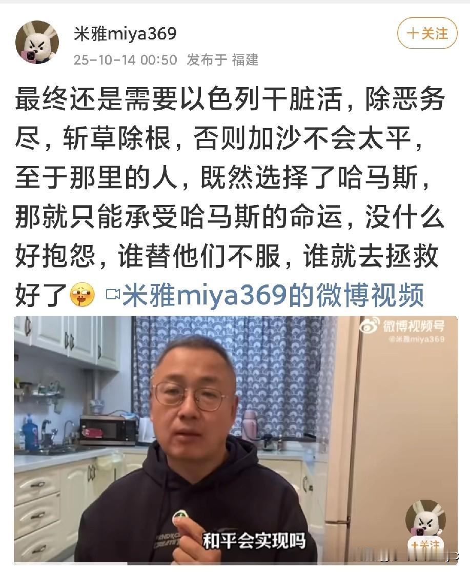 好像很少看到与多数人如此截然不同的观点。哈马斯被定性为万恶之源,呼吁以色列对哈马