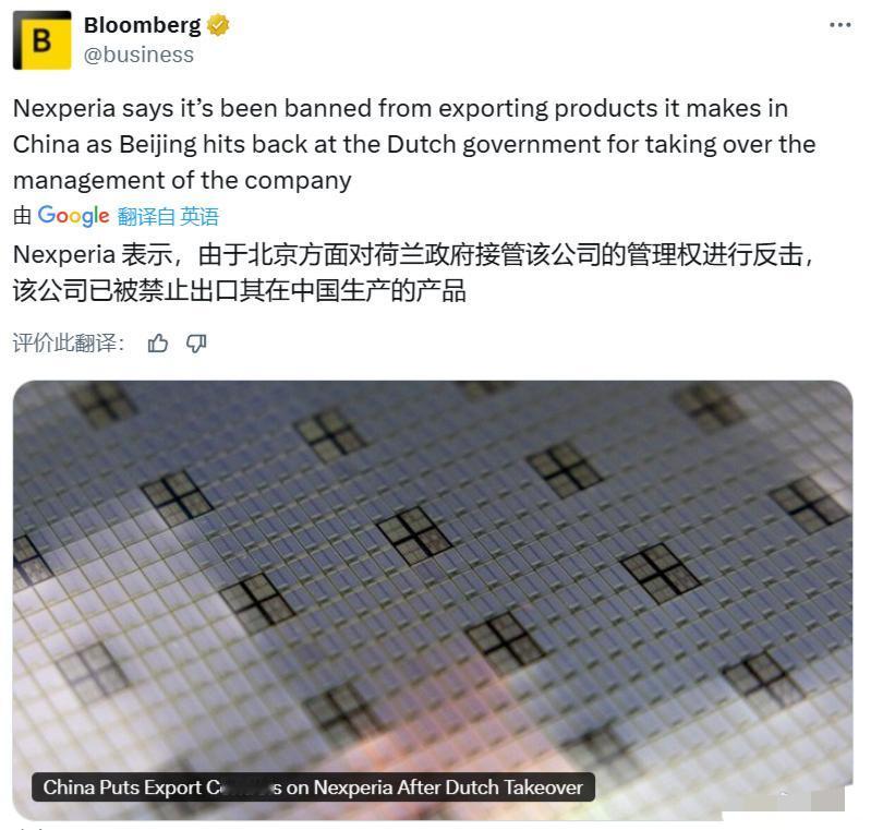 荷兰冻结安世半导体资产后,中国禁止出口安世中国生产的部件和组件。这就意味着荷兰安