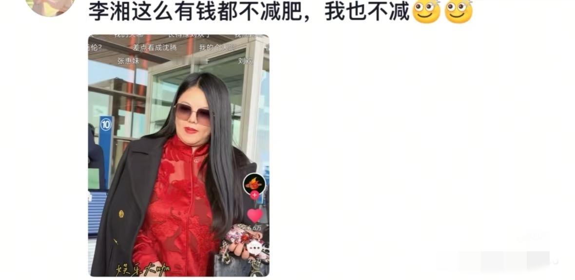 刷到了李湘在机场的视频。 哎有些人到了年龄就是会胖…尤其是如果好吃的好的话,像我妈也是这种身材…我从小就没见她瘦过,她也没有吃很多,就正常吃饭。