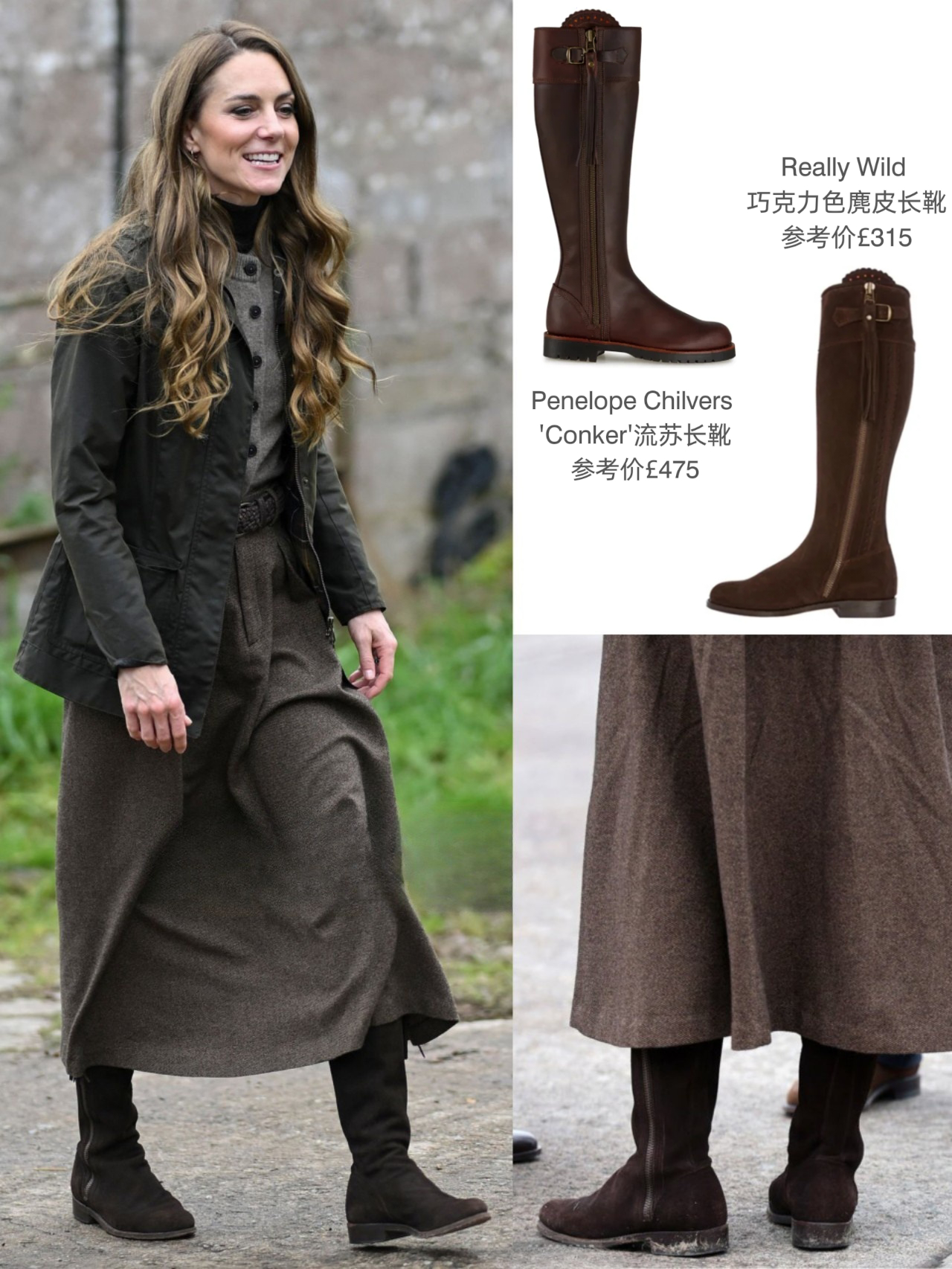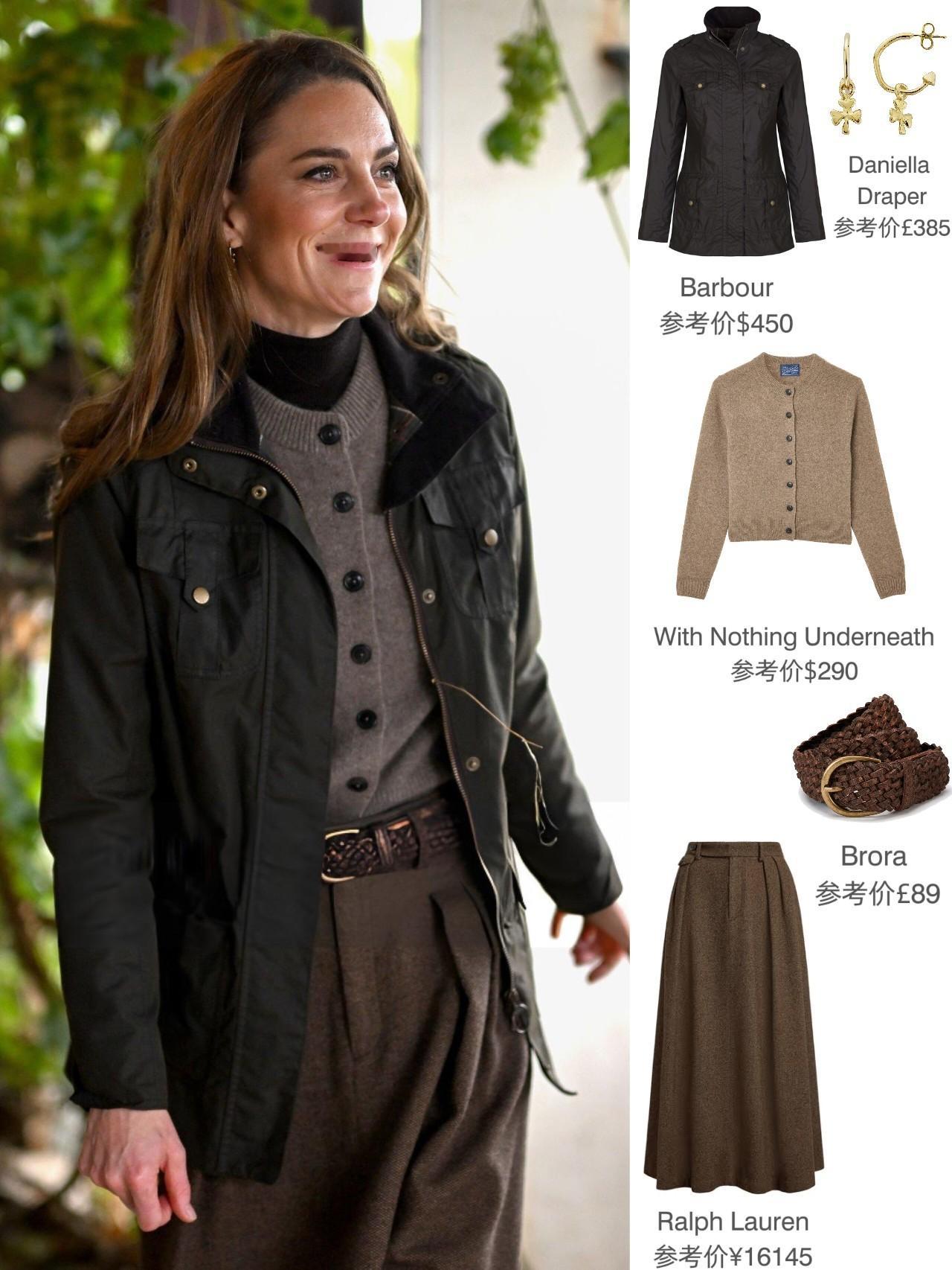 第二套:个人超爱的凯特户外猎装穿搭[干杯]【】。外套来自Barbour,对比了下凯特衣橱里的同版型Barbour旧装,(从外套长度、领口纽扣、内里样式看)大概率是件新品……
