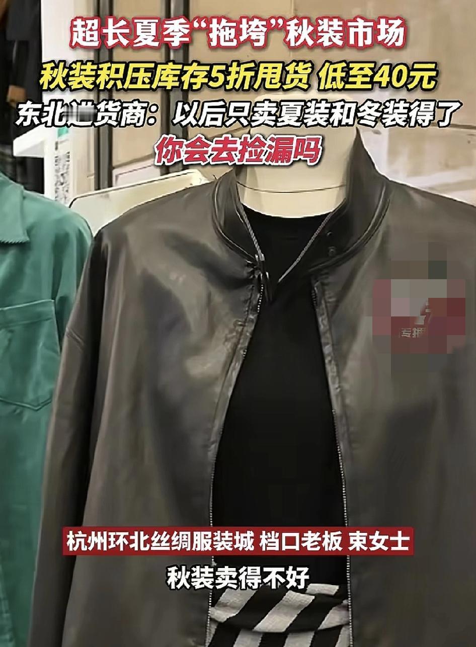 南方没有秋天,再不是全国唯一的了,现在连东北也是从夏天直接进入,冬天漫长的夏天直接拖垮了服装市场,有来自辽宁的进货商城,他们秋装并不好卖,因为时间太短了,有的货商会把前年积压的货拿出来卖,打5折,现在40块钱一件的秋装。而南方市场就更加不用说了,很多商户现在估计只卖夏装跟冬装就可以了。
