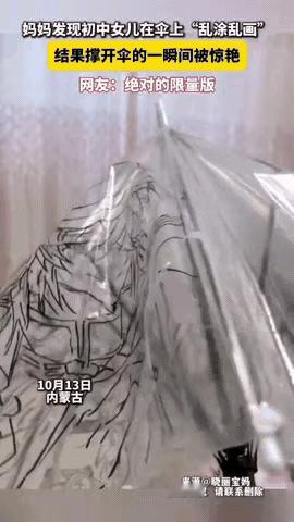 内蒙古一位妈妈发现女儿在透明伞上乱涂乱画,一打开却舍不得用了! 原来,女儿在伞