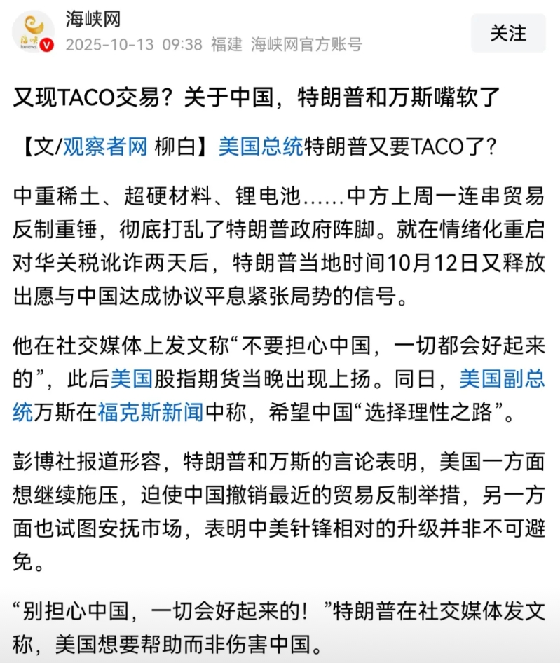 2018年的时候,美国发动对我国的贸易战,当时的我们基础也薄弱,经验也不丰富,一时间捉襟见肘,当时有一个叫马臣的人在网上说:现在是我们向美国投降代价最小的时候。 今天,我们火力全开,从六代机到东风5C,从稀土到船舶,从限制英伟达到调查高通,美国哀叹着希望我们“选择理性之路”。 现在是美国向中国投降代价最小的时候。 那个马臣呢?出来走两步。