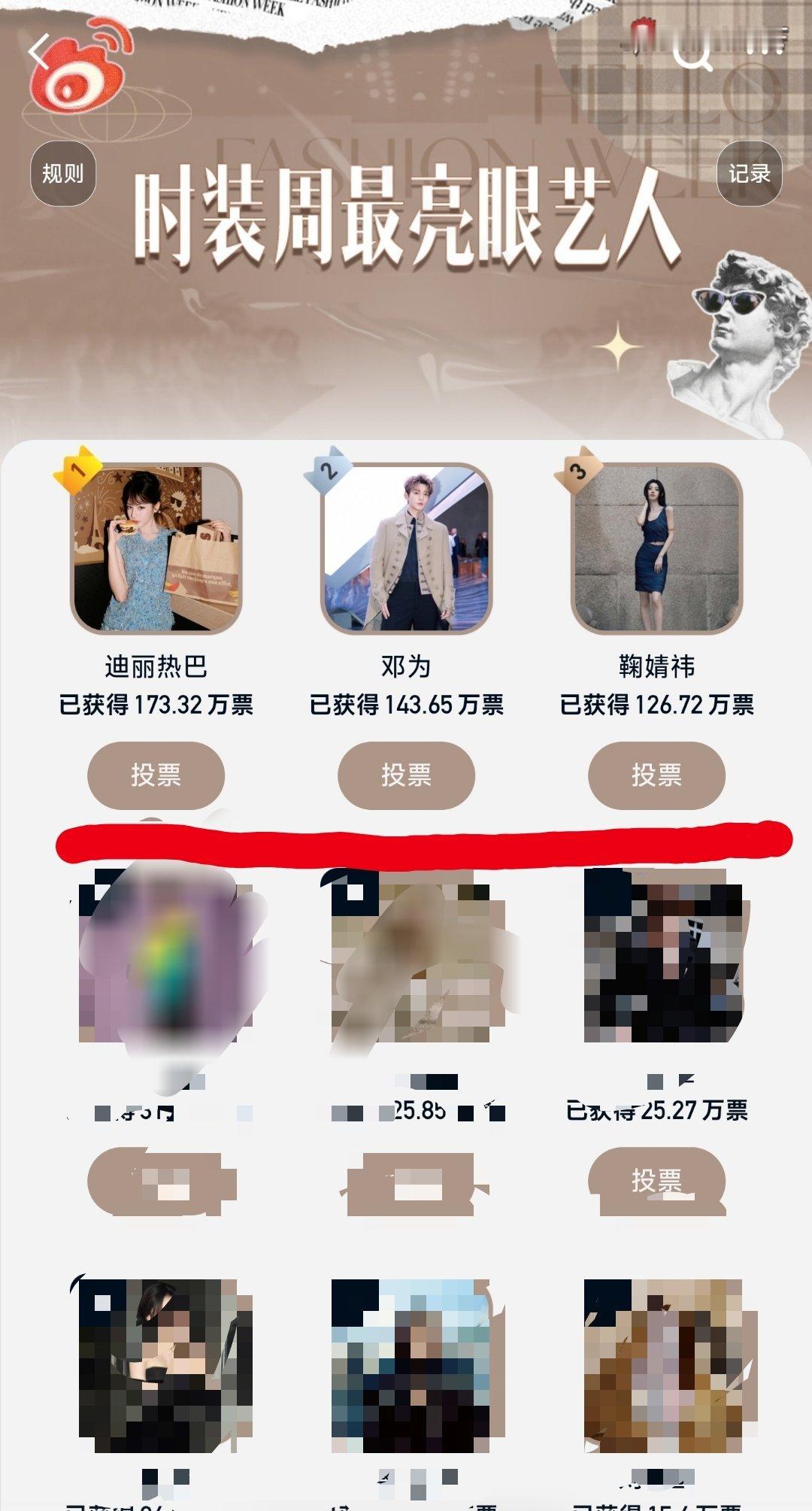 时装周最亮眼艺人前三——❶迪丽热巴,❷邓为,❸鞠婧祎。