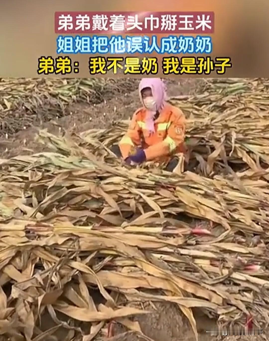 弟弟戴头巾掰玉米被姐姐误认成奶奶 弟弟戴头巾去掰玉米,结果被姐姐误当成奶奶,这画面想想就逗乐。估计是弟弟裹着头巾,弯腰掰玉米的样子跟奶奶太像了,才让姐姐闹了这笑话。 掰玉米可不是个轻松活儿,从参考信息能知道,农民为了让玉米丰收、归仓,那可是费了不少劲。有的请大吊车来收玉米,有的用石灰防止玉米被偷。姐弟俩掰玉米时闹出这笑话,也给这辛苦的活儿添了点乐子,说不定以后想起来都得笑出声呢。