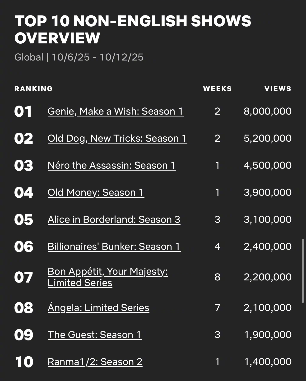 10/6~10/12 Netflix非英语区电视播放量Top10入榜韩剧