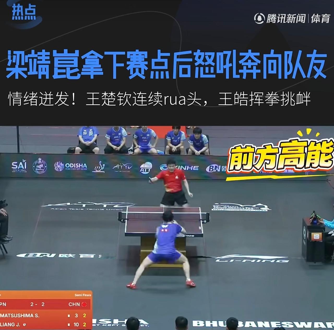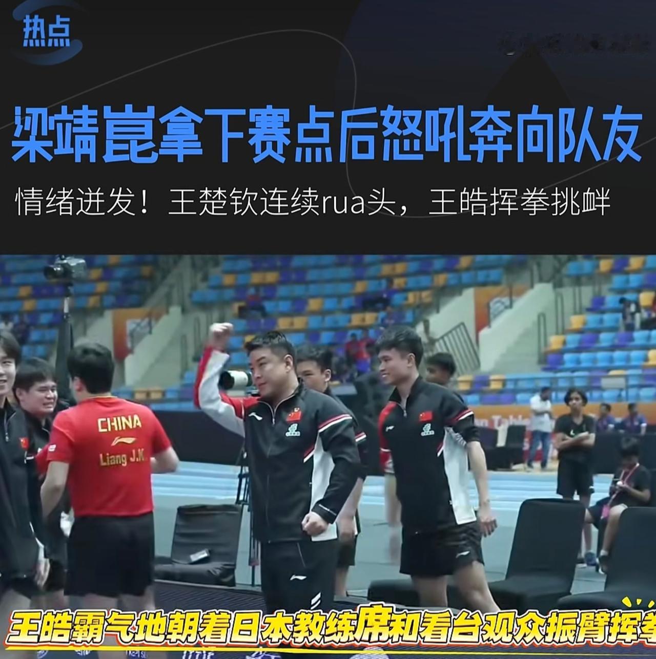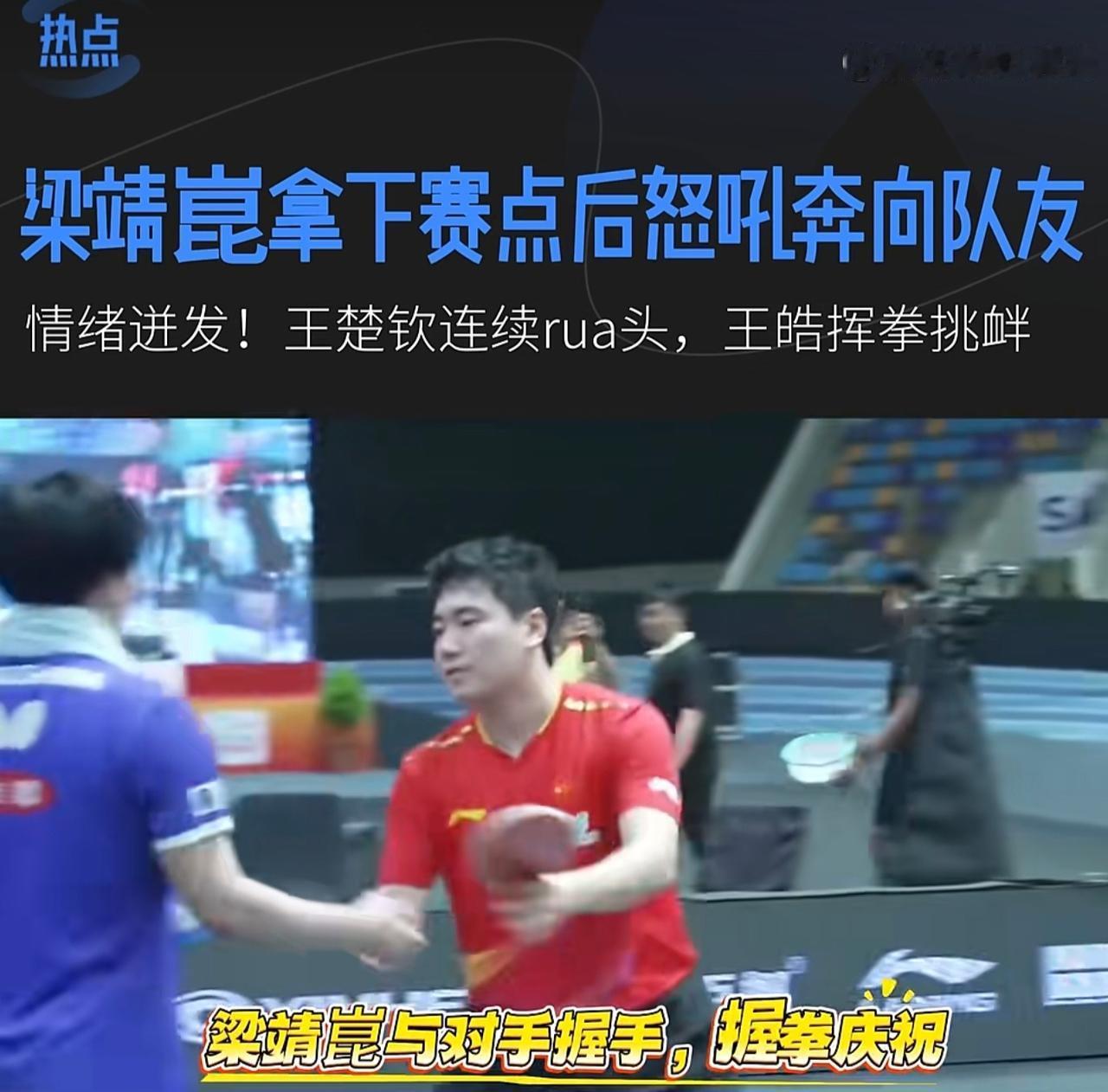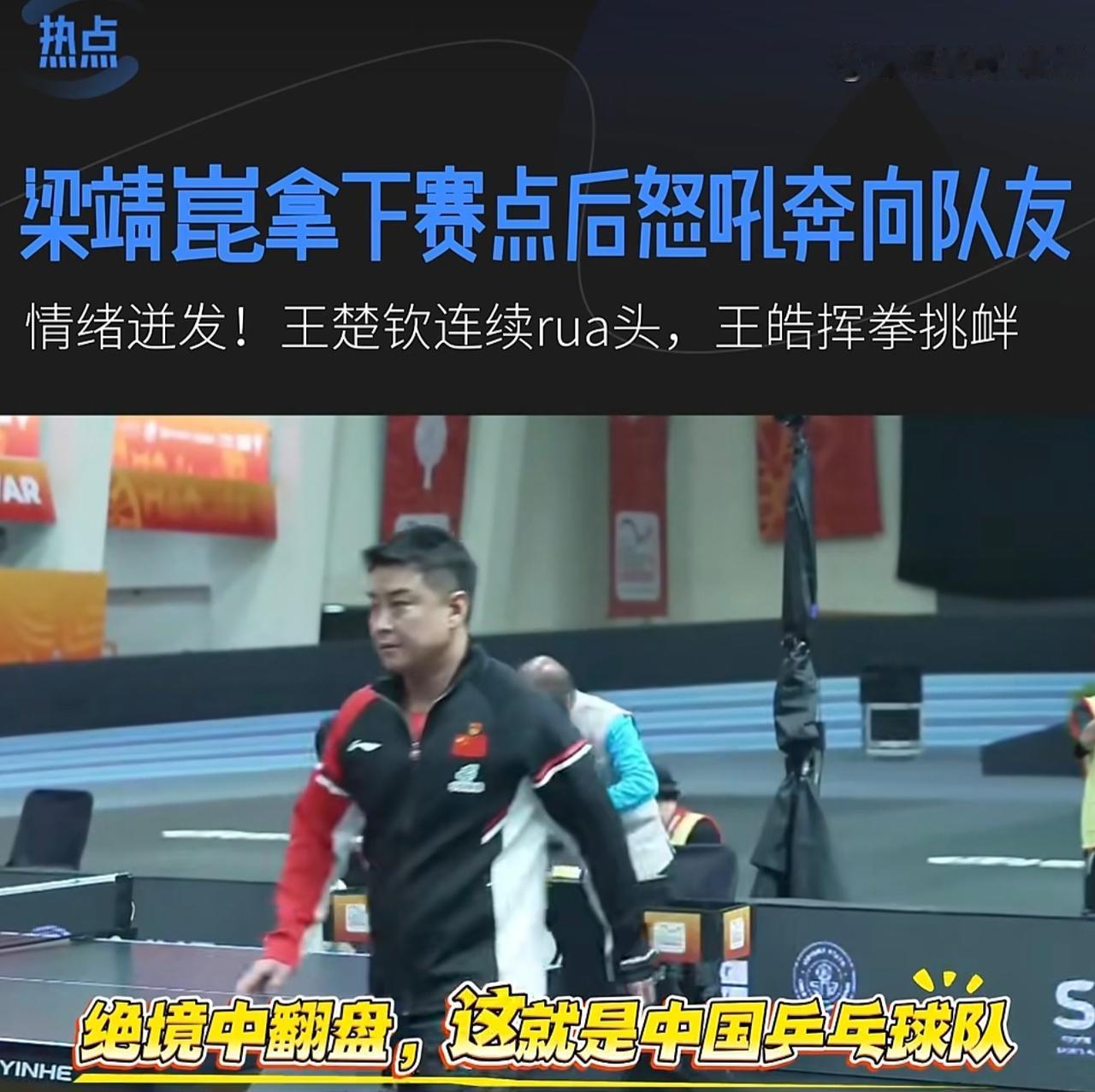 绝境翻盘!梁靖崑拿下赛点后怒吼奔向队友,王楚钦连续rua头,王皓挥拳挑衅。