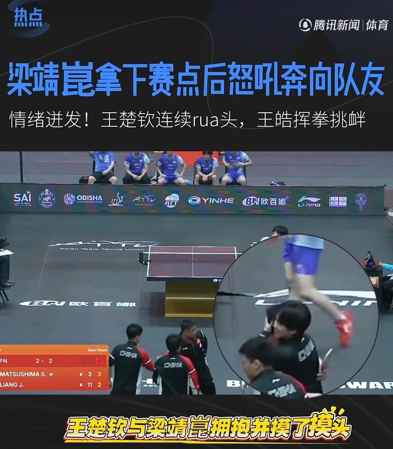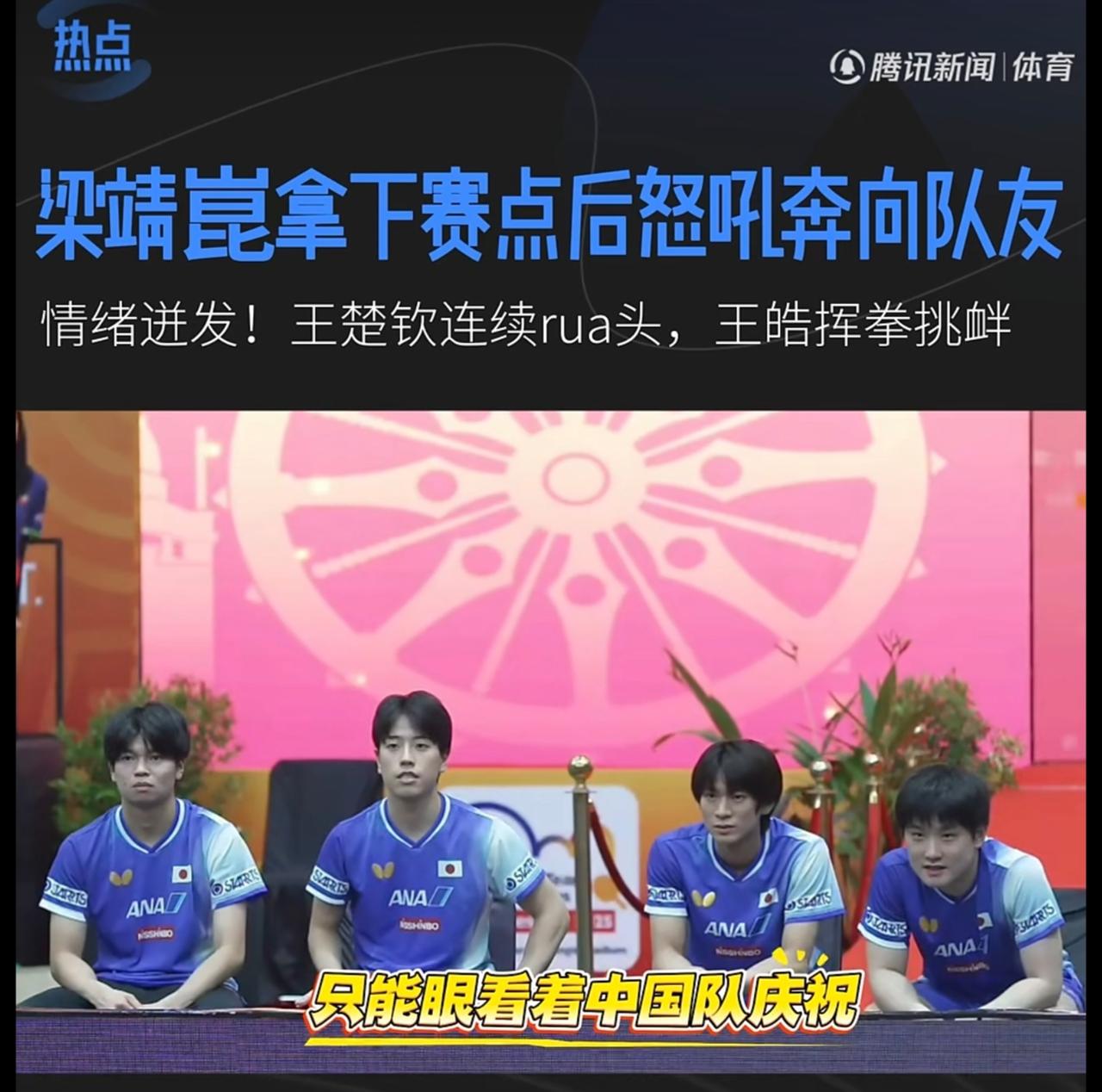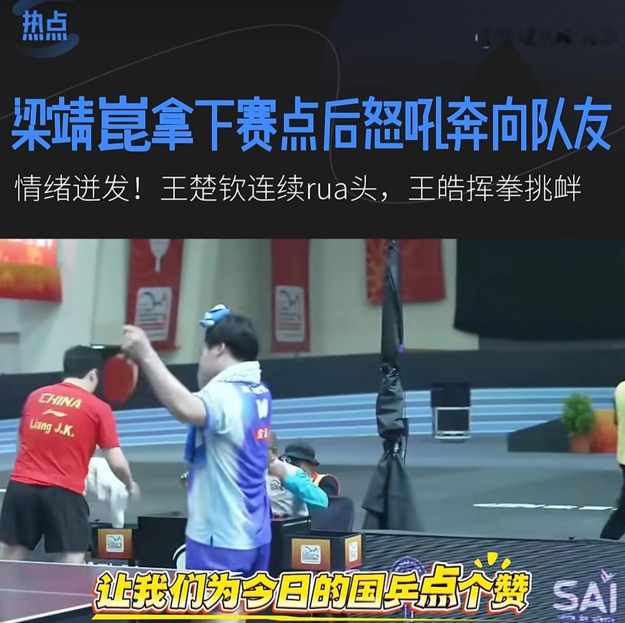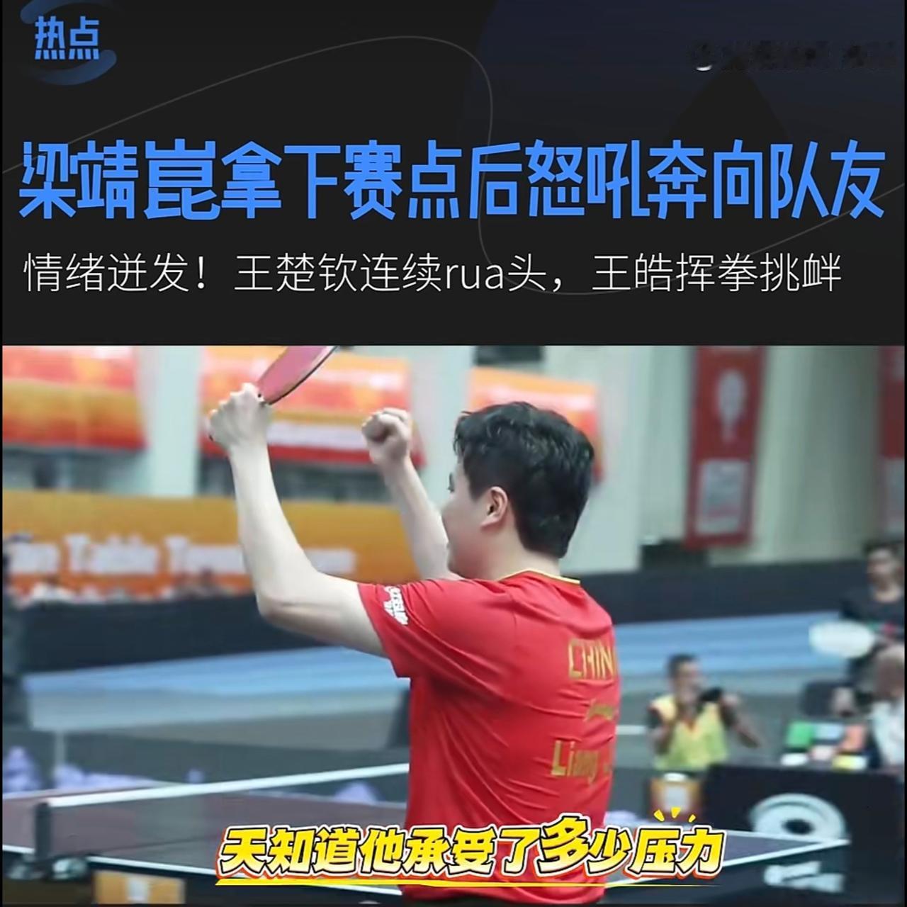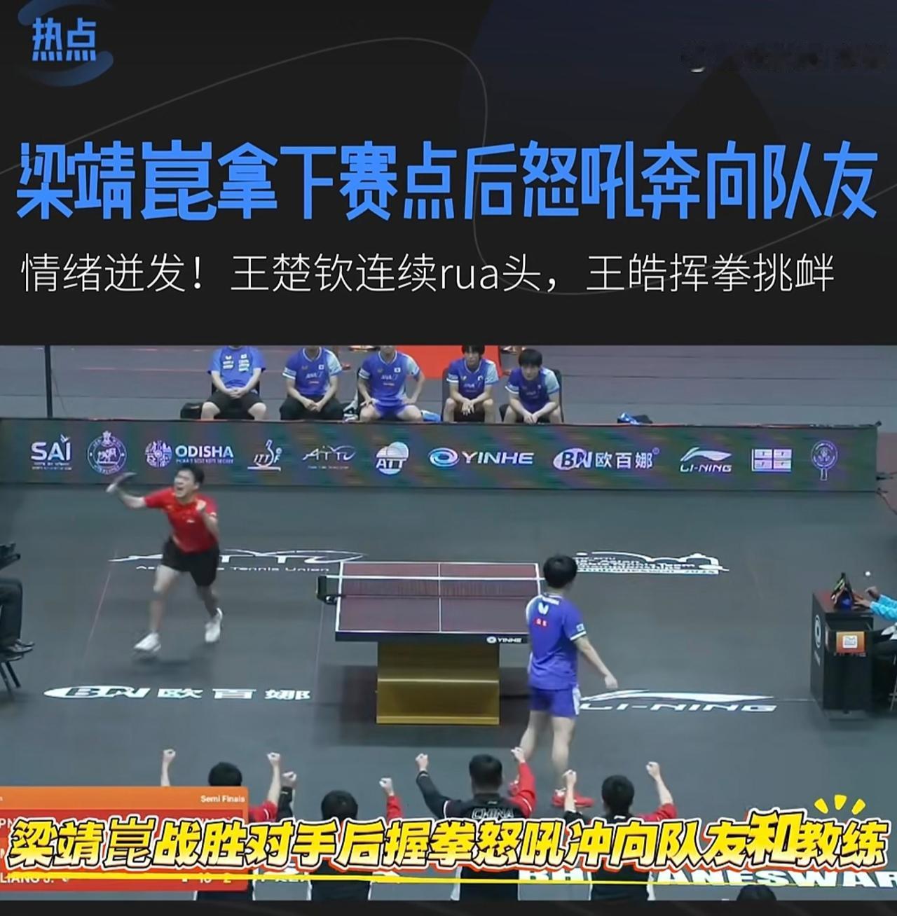 绝境翻盘!梁靖崑拿下赛点后怒吼奔向队友,王楚钦连续rua头,王皓挥拳挑衅。