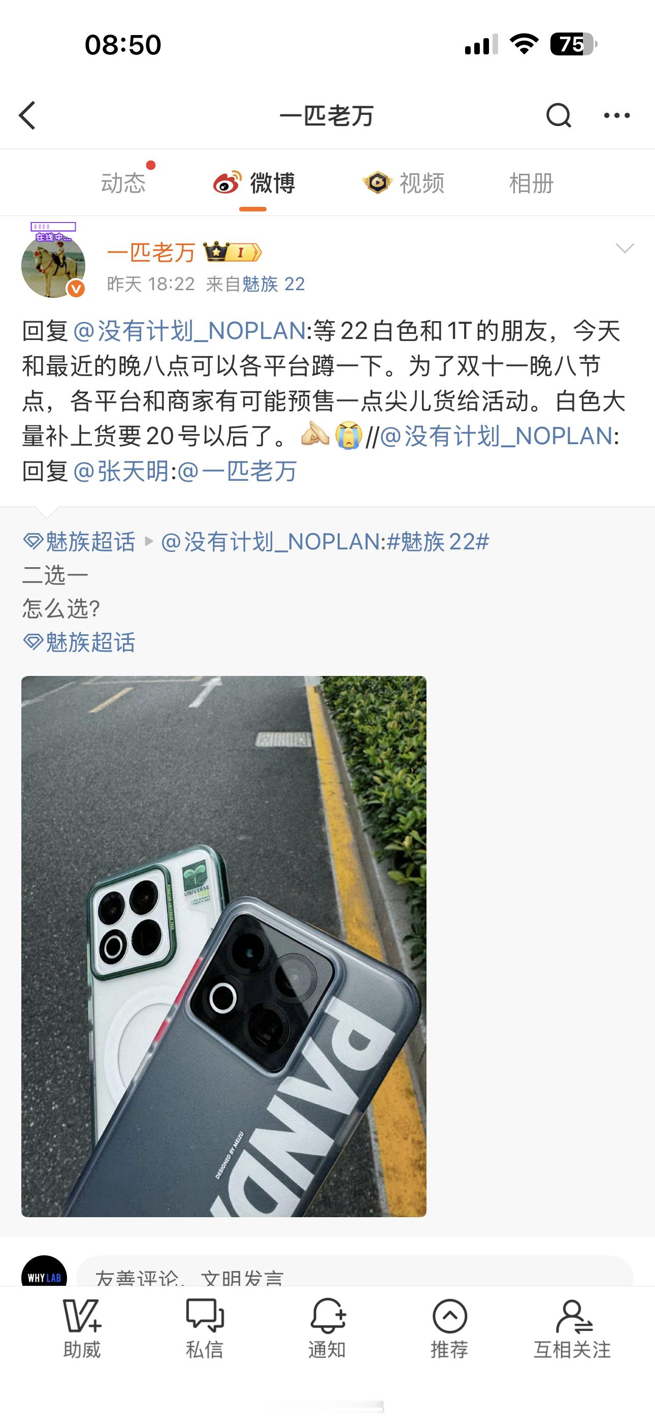 另外今天 10:00,魅族 22 归航 · 中华旗舰版就要正式开售了,想买的小伙伴别错过时间。[并不简单]