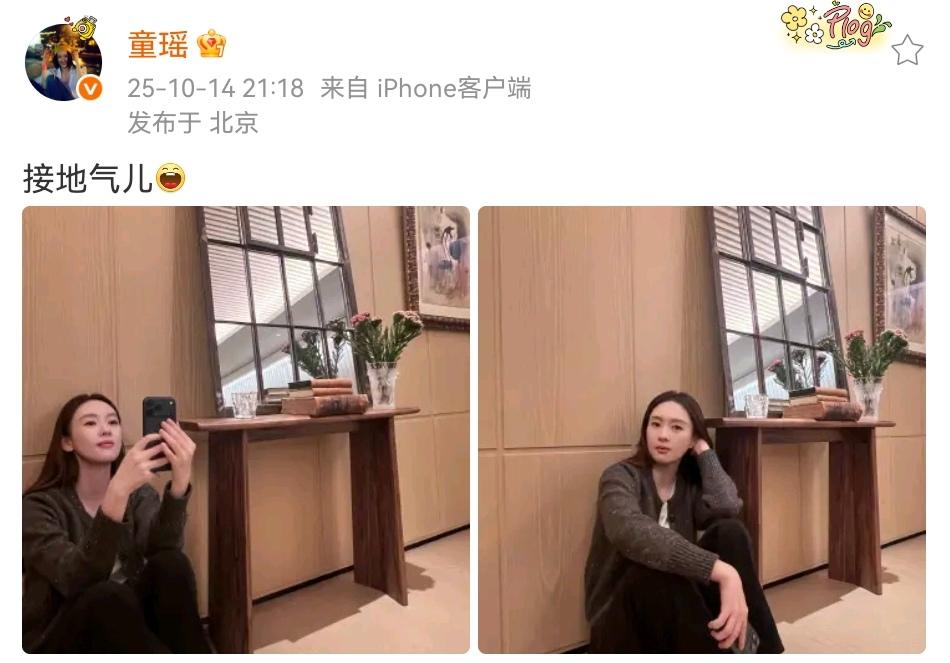 呵呵,想不到童瑶还挺幽默的…… 10月14日,童瑶在个人账号发了两张照片,配文