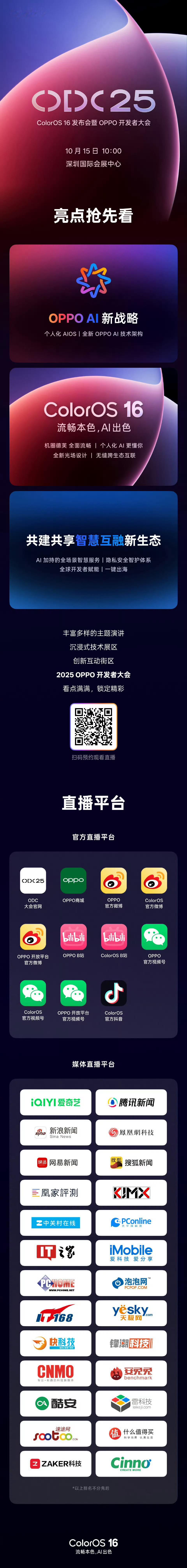 2025OPPO开发者大会就在今天10:00举行!都来看看这次的ColorOS 16 都有哪些亮点[开学季][开学季]