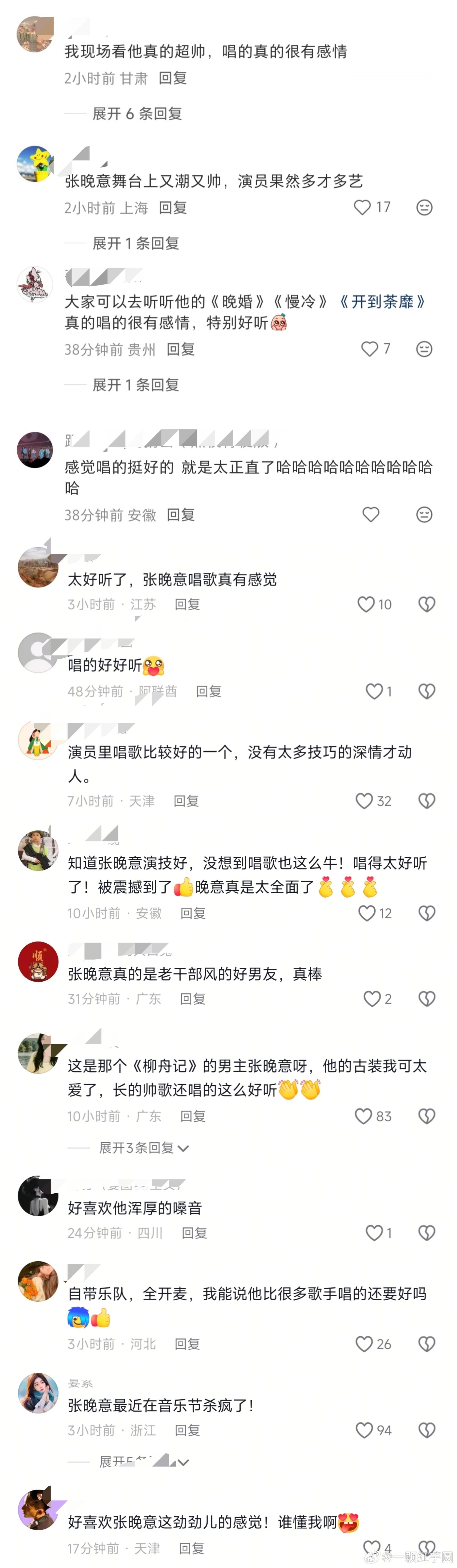 张晚意 国庆和以前参加的一些音乐节观众评价都很好啊[赞啊]!欢网大数据国庆音乐节艺人讨论度热议张晚意[good]
