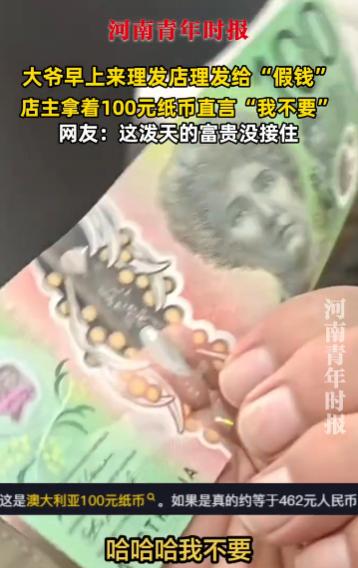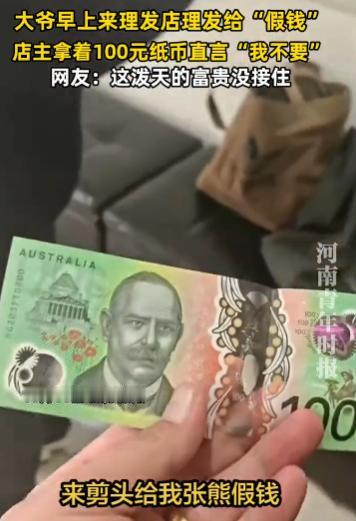 10月11日,江苏,一大爷去理发店理发,结束后,竟然掏出一张绿色百元大钞付钱,店主拿着钱都懵了,从没见过这种钱,而且还是塑料的,他以为是“假钱”,坚持不要,让大爷必须换一张。 大爷没办法只能换人民币,店主自以为聪明,发到网上后,却被网友吐槽:你错过发财机会了。 江苏某银行门口,老周正帮一位游客辨认手里的外币。他指着钞票上的透明窗口:“这是澳元,你看这全息图案,假不了。” 游客连声道谢,老周笑着摆手,想起几天前自己闹的笑话。 10 月 11 日那天,老周的理发店刚开门,就来了位大爷。大爷穿着洗得发白的外套,手里攥着个布包,说要理短发。 老周一边推剪,一边跟大爷聊天,问他儿女在哪工作。大爷掏出手机,翻出儿子的照片:“在澳大利亚当工程师,去年寄了些钱回来。” 老周当时没在意,直到理完发报价 25 元,大爷递来一张绿色塑料钞。老周接过来,手指搓了搓,滑溜溜的不像纸币。 “大爷,您这钱咋是塑料的?我没见过啊。” 他皱着眉问。大爷赶紧解释:“这是澳元,我儿子说在国外都用这个。” 他还指着钞票上的数字:“你看,这是 100,能换不少人民币呢。”可老周开店十几年,只收过人民币,心里犯嘀咕,觉得是假钱。 “大爷,我这小店收不了外币,您要么扫码,要么换现金。” 老周把钱递回去。大爷脸上有点尴尬,翻遍了钱包,才找出一张 50 元人民币。老周找了 25 元零钱,大爷接过澳元,叹了口气:“这钱在这儿咋没人认呢。” 看着大爷离开的背影,老周还跟隔壁店主吐槽 “遇到用假钱的”。中午吃饭时,老周刷朋友圈,看到有人发外币识别的帖子。 里面提到澳元是绿色塑料钞,还有透明防伪窗口,跟大爷给的一模一样。他心里一紧,赶紧找出大爷留下的澳元照片(当时没还,后来送回去了),发群里问。 群里瞬间炸开,有人说:“老周,你亏了!100 澳元能换快 500 块!” 老周赶紧关了店,骑车去附近的银行找经理咨询。银行经理接过照片一看,笑着说:“这是真澳元,1988 年澳大利亚就用塑料钞了。” 他还拿出样币对比:“你看,正面是歌唱家内莉・梅尔巴,背面是工程师莫纳什。”老周算了算,25 元的理发费,要是收了澳元,相当于多赚近 500 块,肠子都悔青了。 从银行回来,老周托人联系上那位大爷,把澳元还了回去。他一个劲道歉:“大爷,都怪我没见识,您别往心里去。” 大爷倒没生气,还笑着说:“没事,很多人都不认识,下次我带人民币来。”老周心里过意不去,又免费给大爷理了次发,还留了他的联系方式。 之后的日子,老周开始主动学外币知识。他去书店买了本外币识别手册,把常用外币的特征抄在卡片上。 收银台旁边贴了张表,记着美元、欧元、日元的关键标识。他还下载了外币兑换 APP,每天早上都看一眼实时汇率。 有次来了位留学生,用欧元付款,老周很快就辨认出来,按汇率收了钱。现在,老周的理发店成了附近小有名气的 “外币辨认点”。街坊邻居遇到不认识的外币,都会来问他。 那位澳大利亚的大爷,每个月都会来理发,还带了些国外的糖果。老周也常跟大爷打听澳大利亚的事,说以后有机会去旅游,得认识外币。 他常跟顾客说:“时代在变,咱也得跟着学,不然早晚闹笑话。” 信源:河南青年时报视频