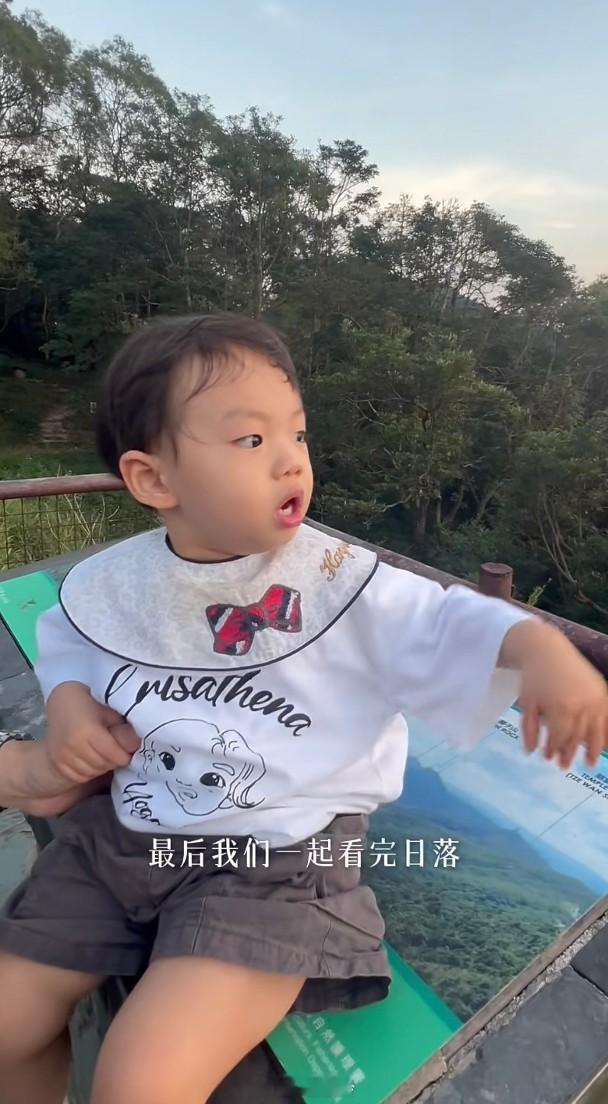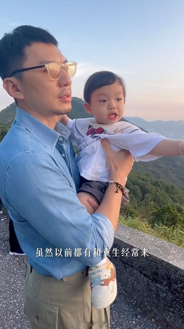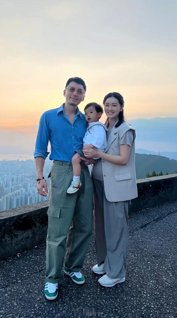 一家三口去了兩人當年的拍拖勝地飛鵝山觀看日落。
