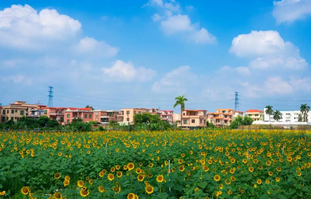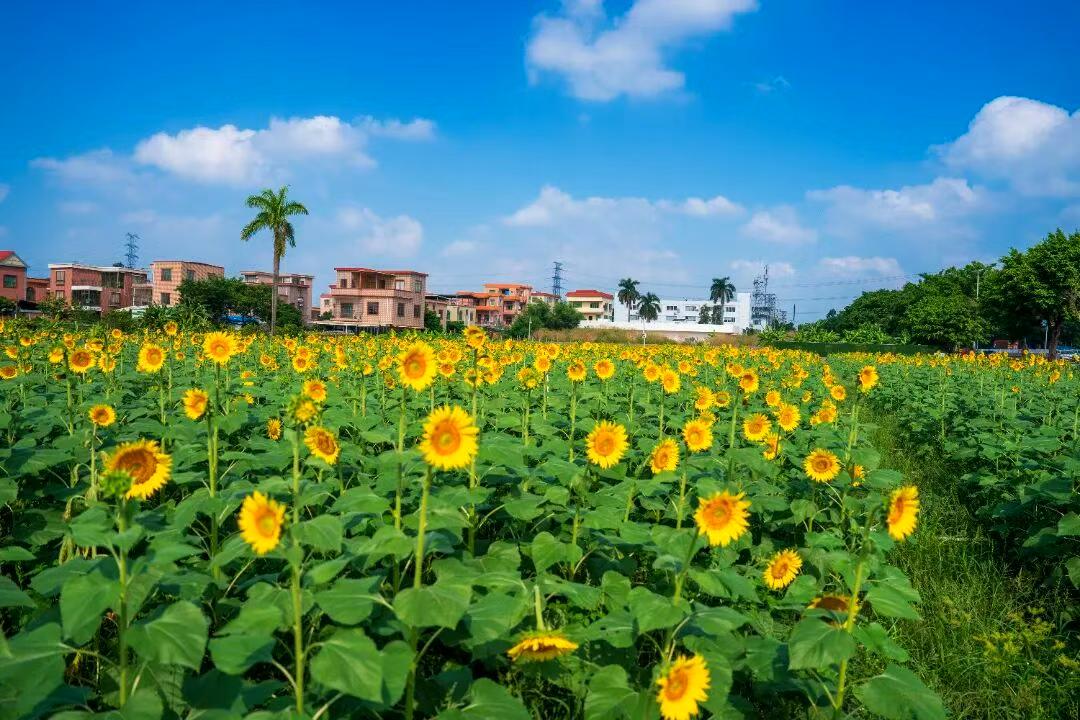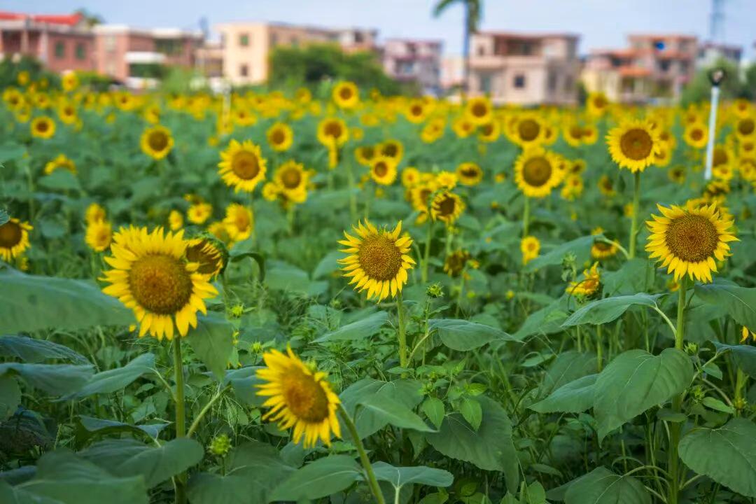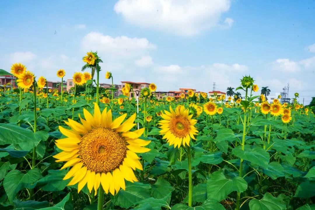【鱼窝头也有向日葵花海】看向日葵花海不仅有官坦农业公园,现在细沥村的70余亩向日葵也盛放中!配合旁边的村屋,感觉出片的效果更好,很有宫崎骏动画的味道。