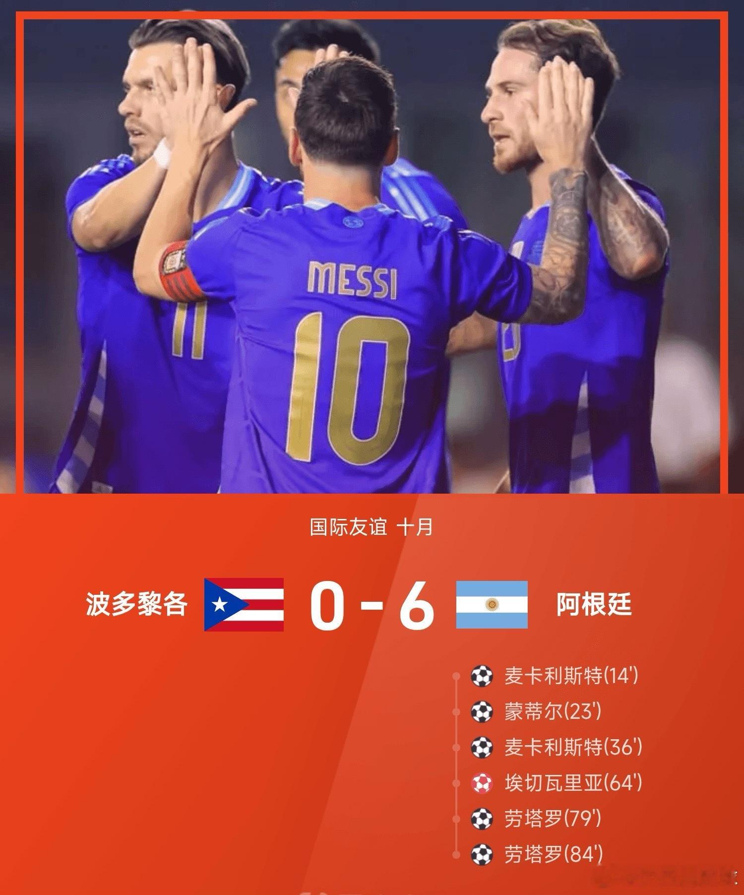 友谊赛战报:梅西2助攻、劳塔罗双响,阿根廷6-0波多黎各足球梅西