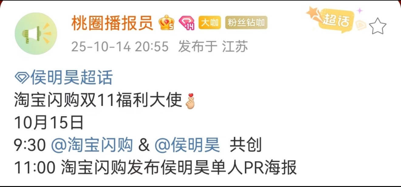 淘宝闪购侯明昊不错不错,恭喜侯明昊,新剧在播,商务➕1!