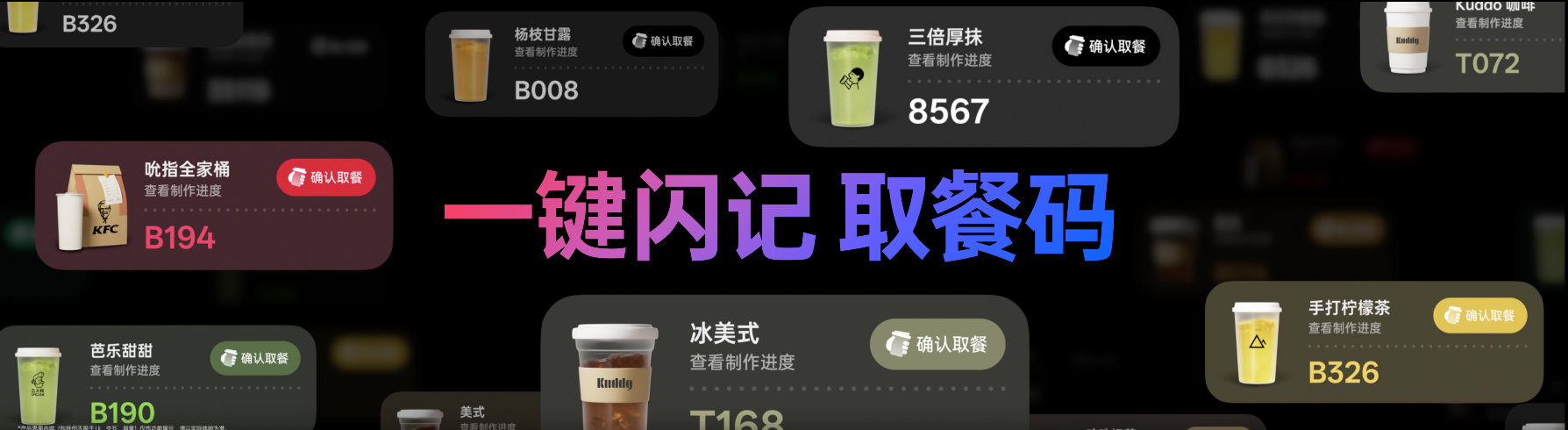 生活场景,像点外卖,按一下即可自动识别取餐码,取餐码,云上见!想记账,按一下即可快速一键记账,月度消费,云上见!